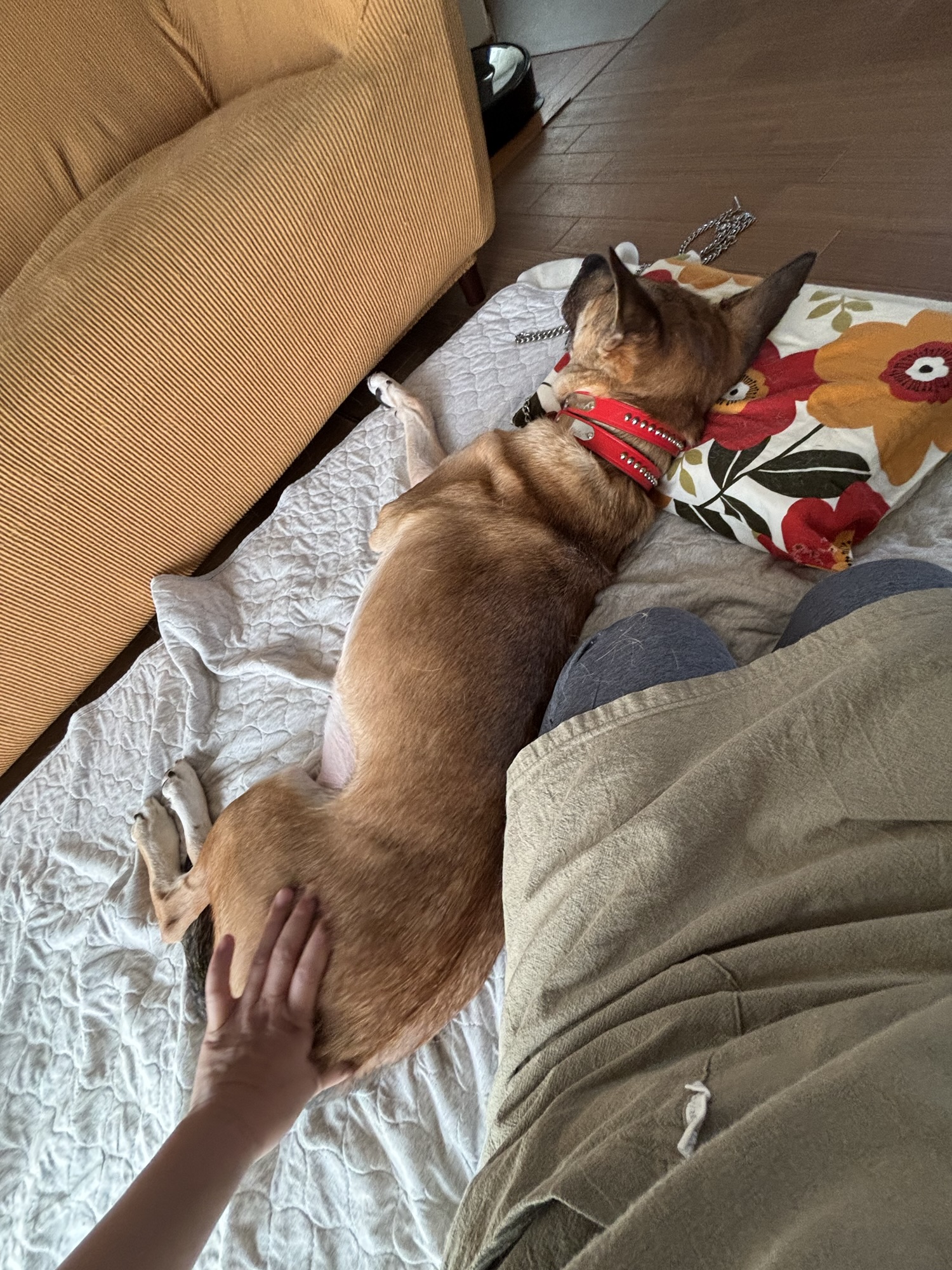そのうち、自分のベッドに伏せていました。