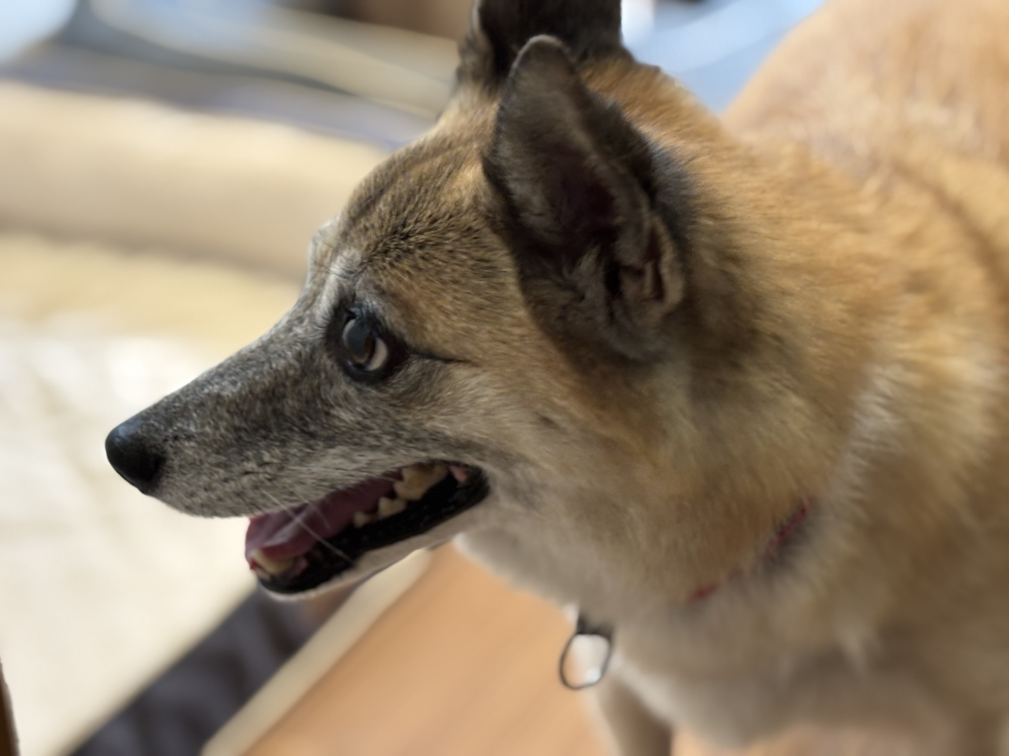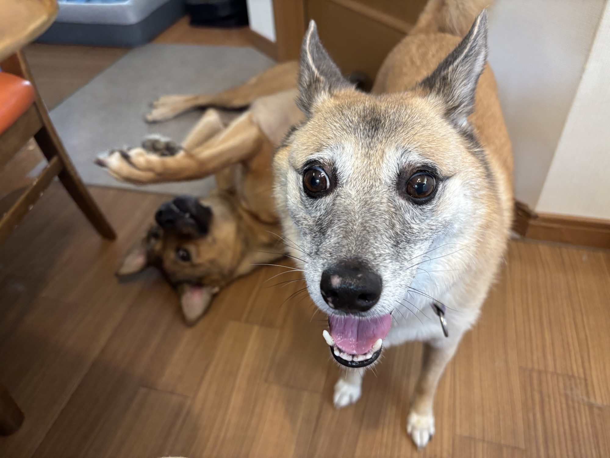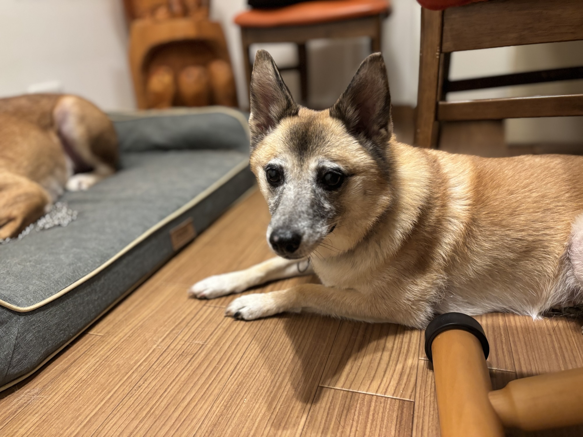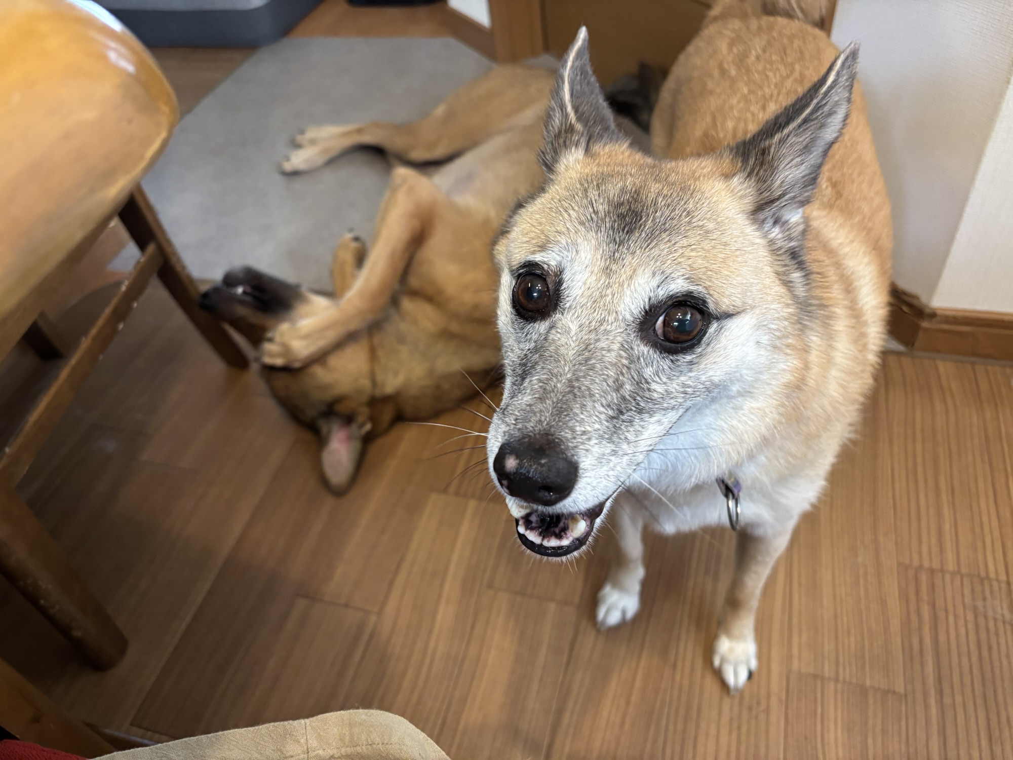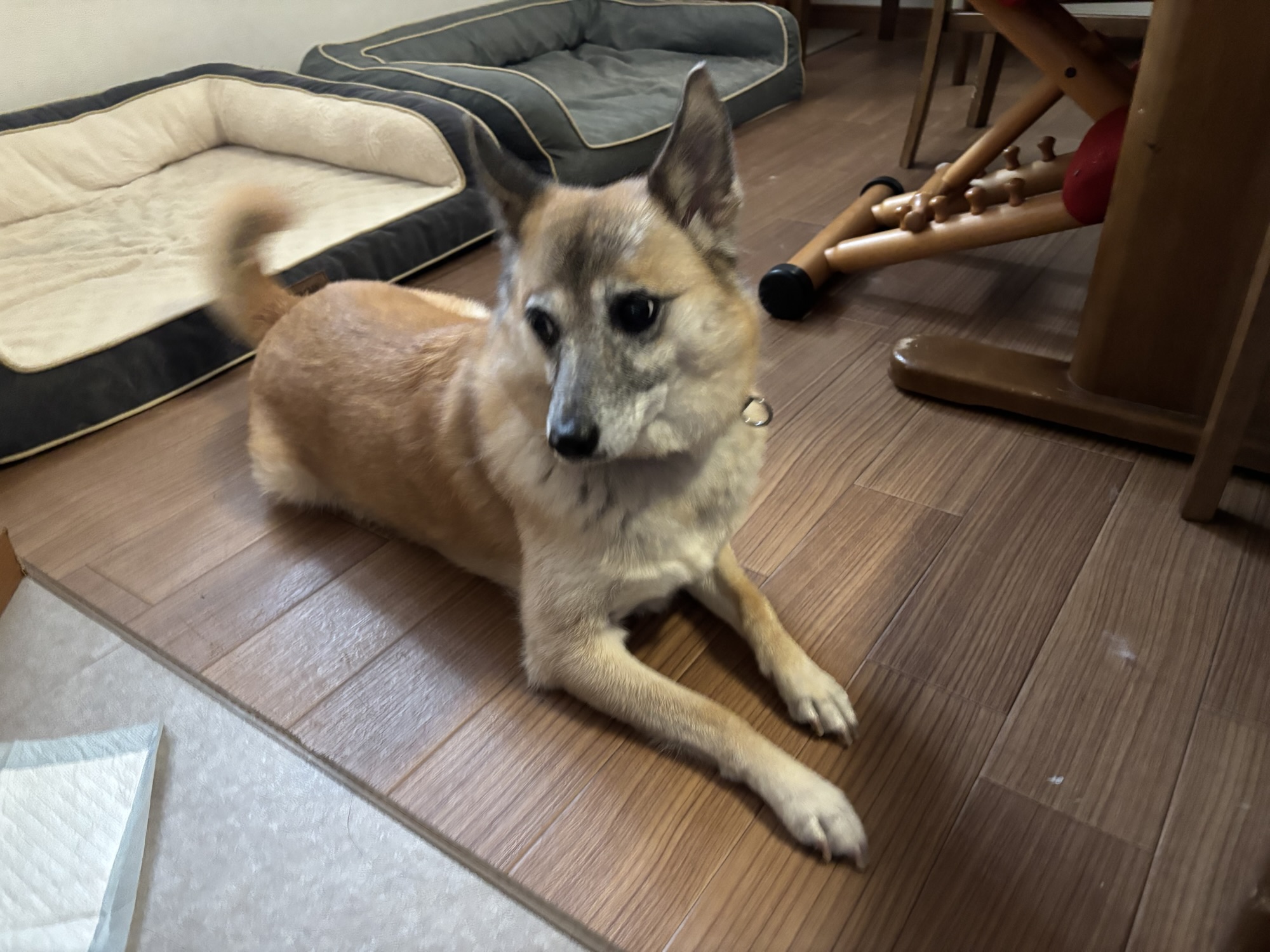 ブログを書いている横で、伏せるけやきちゃん。