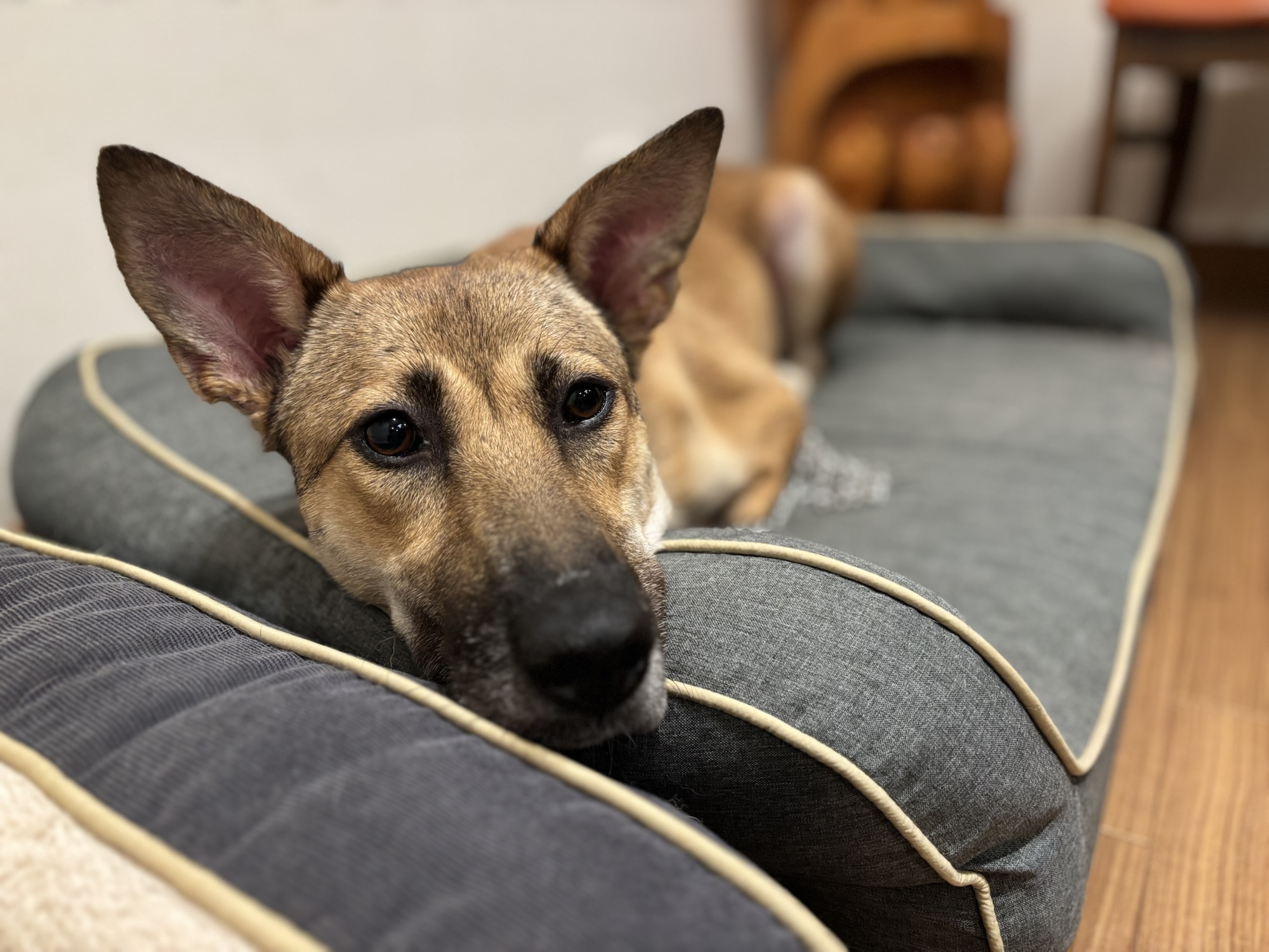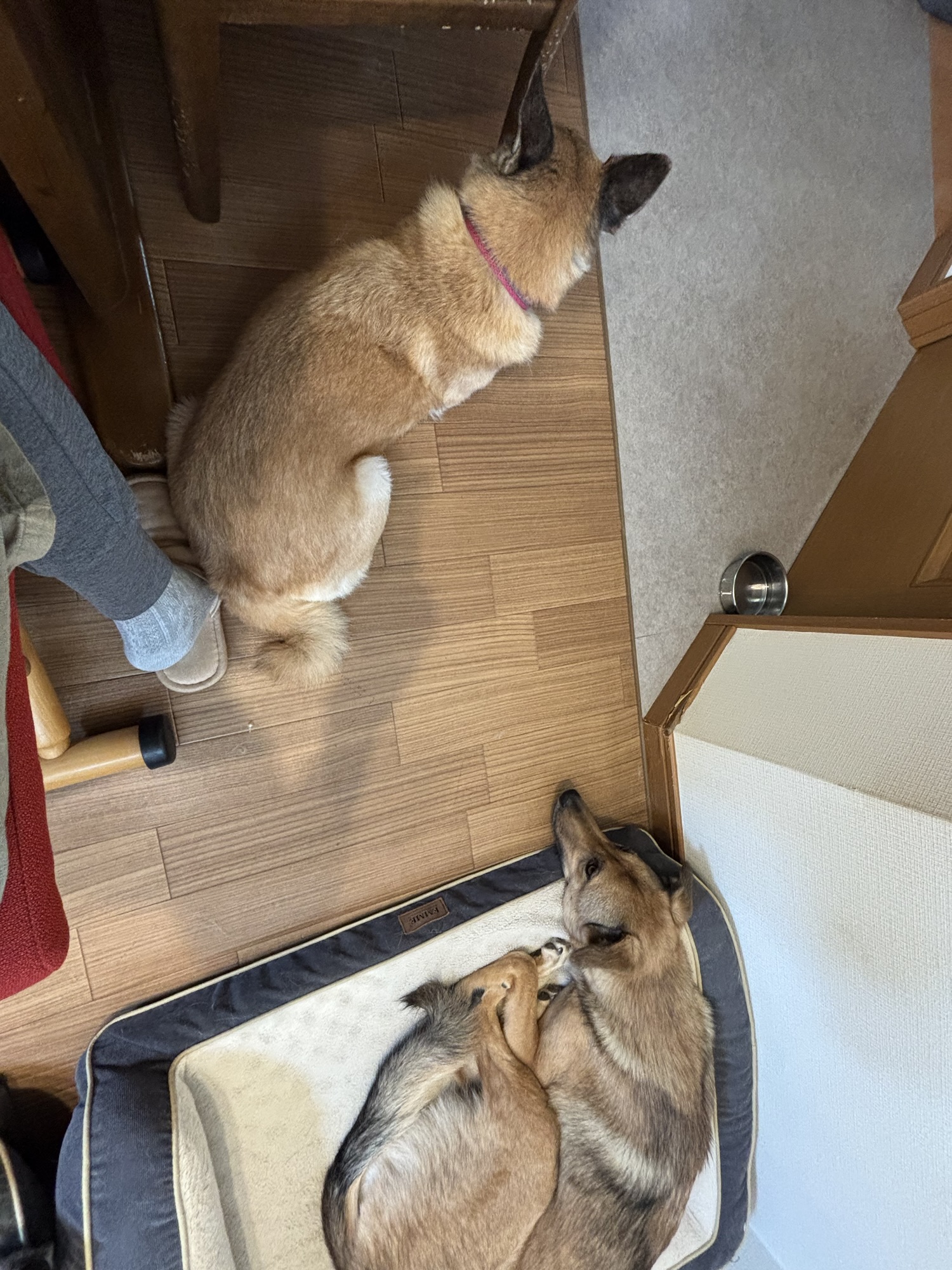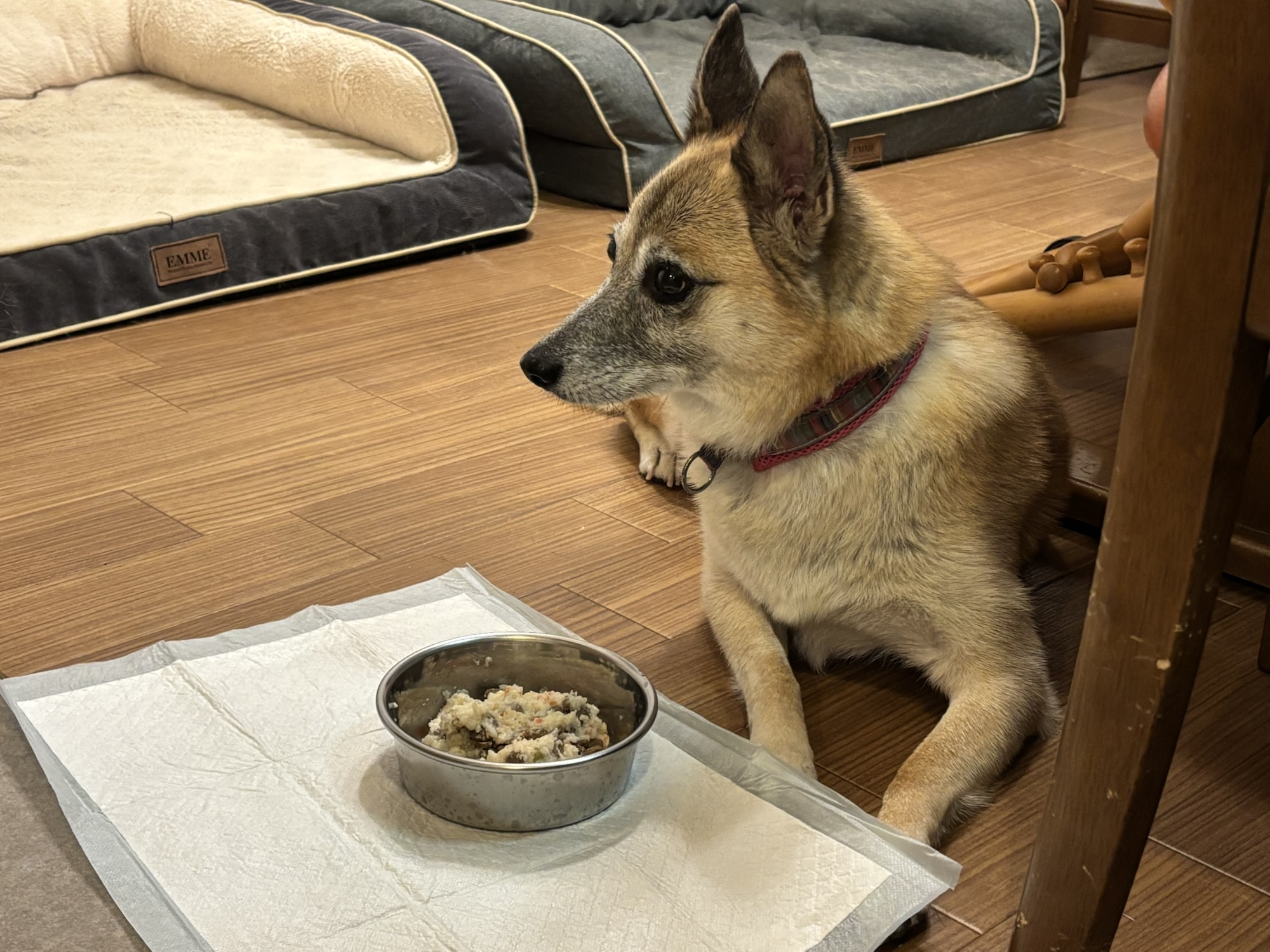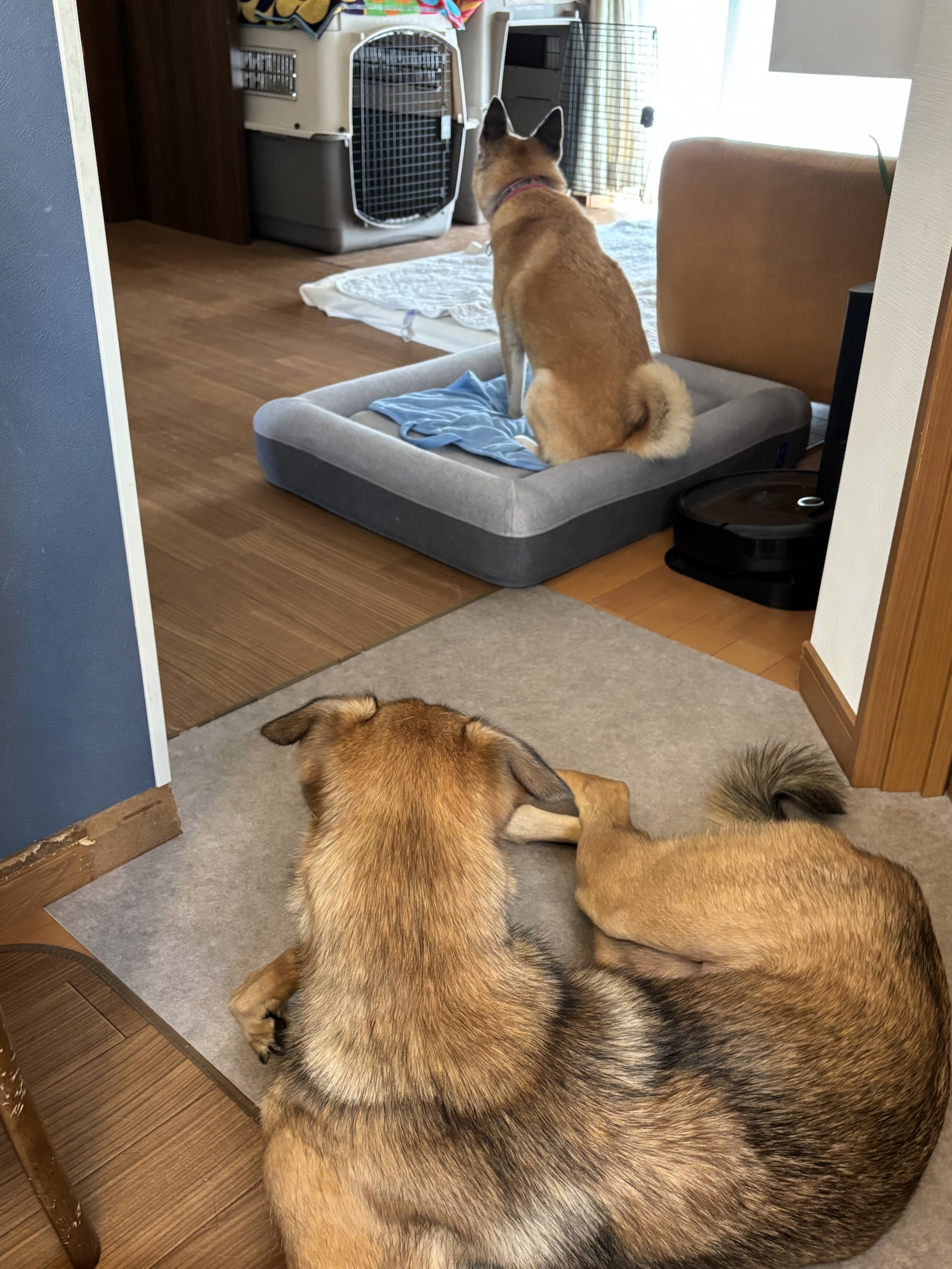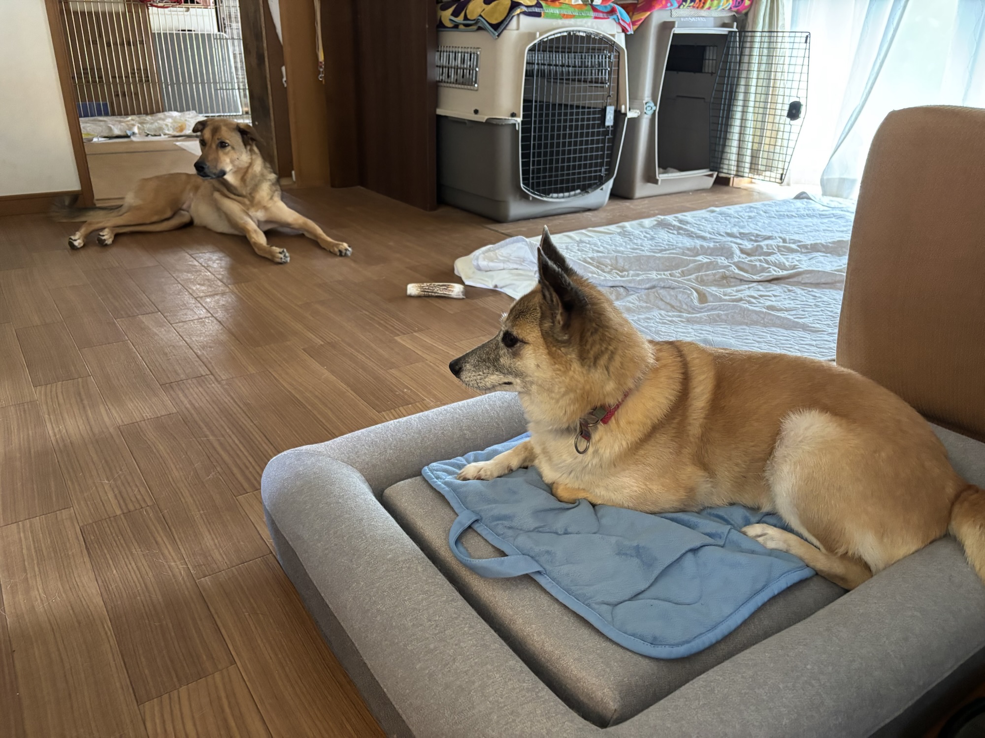 やっと、持参したドッグベッドに座りました。