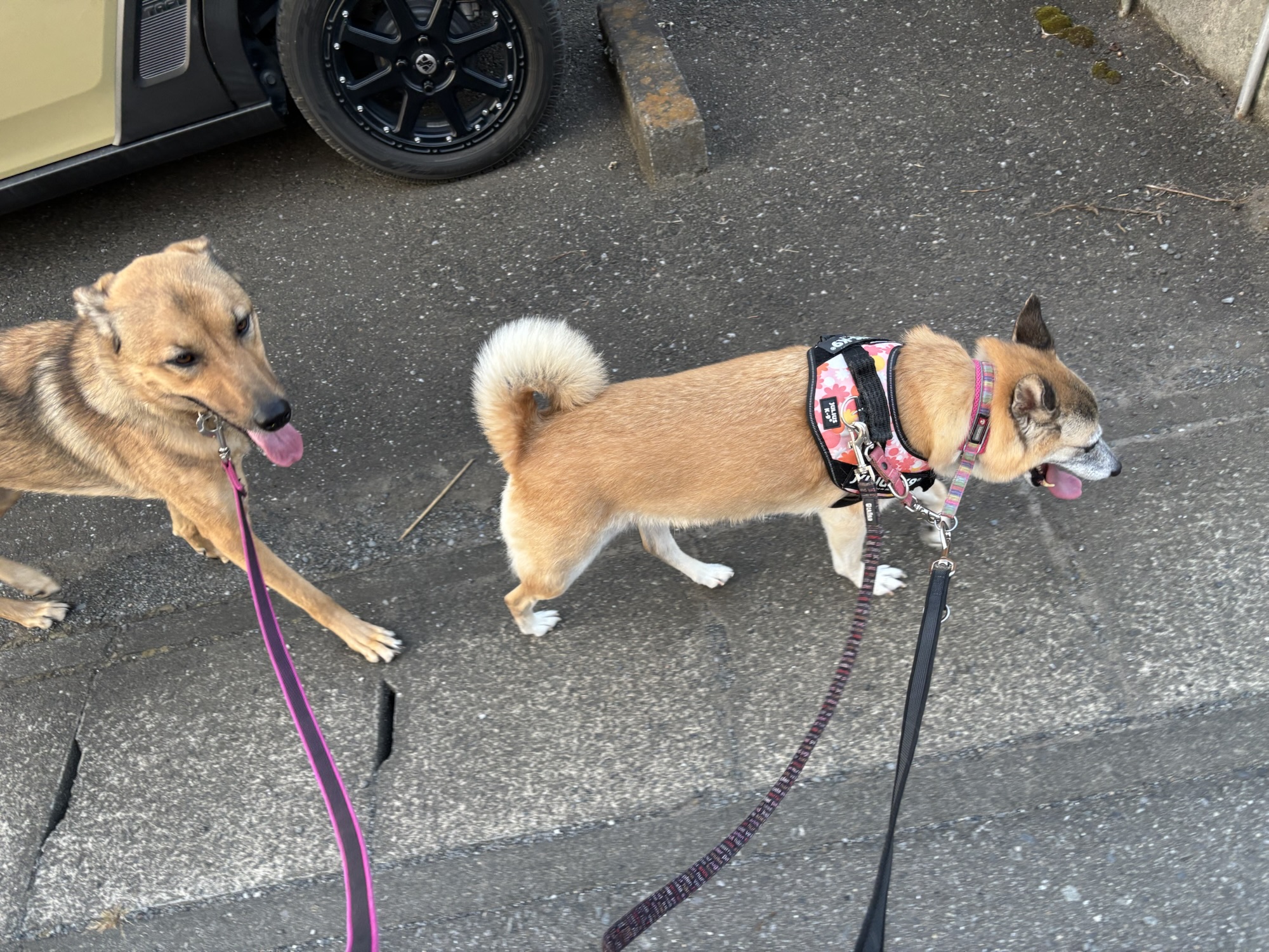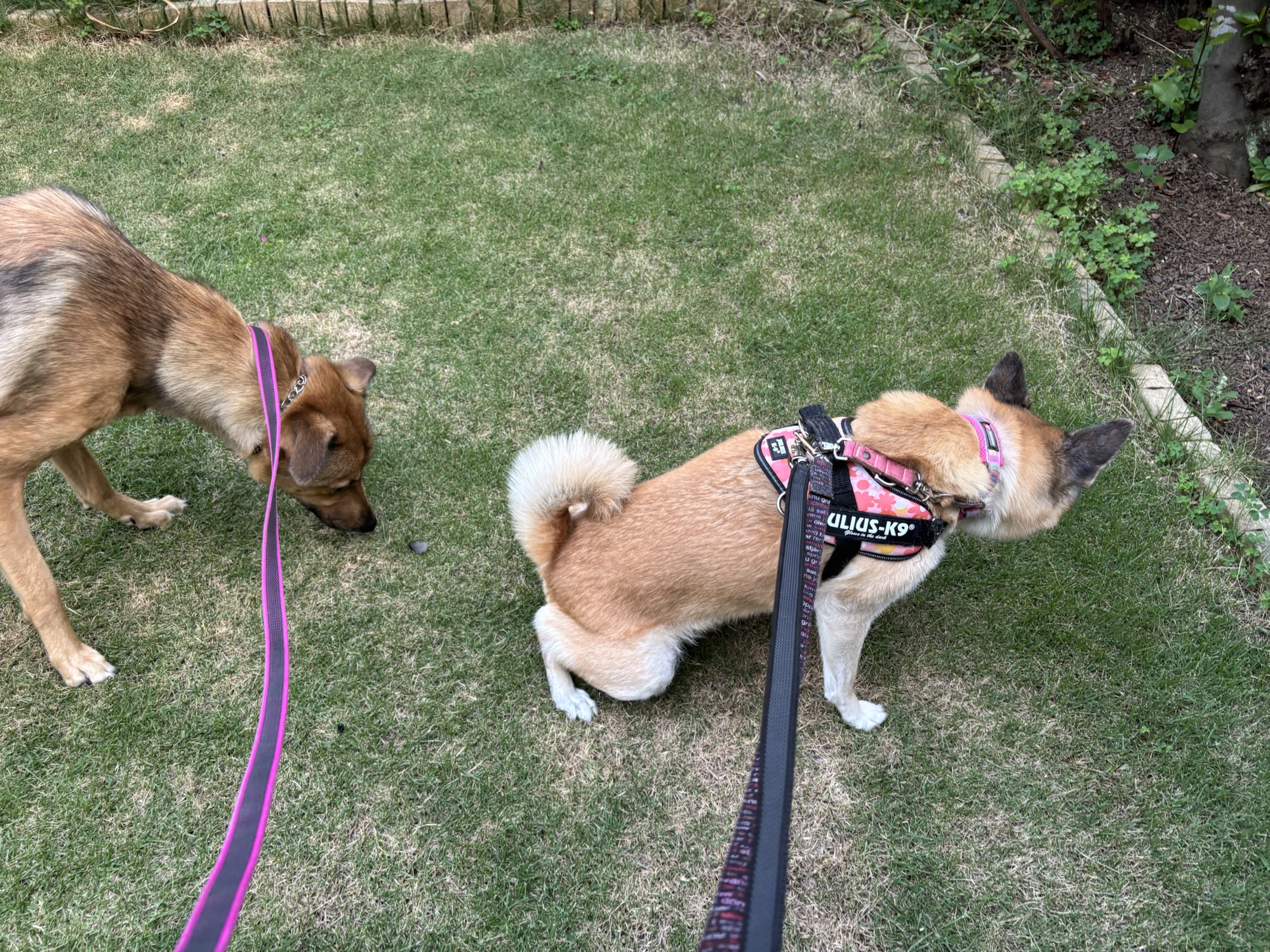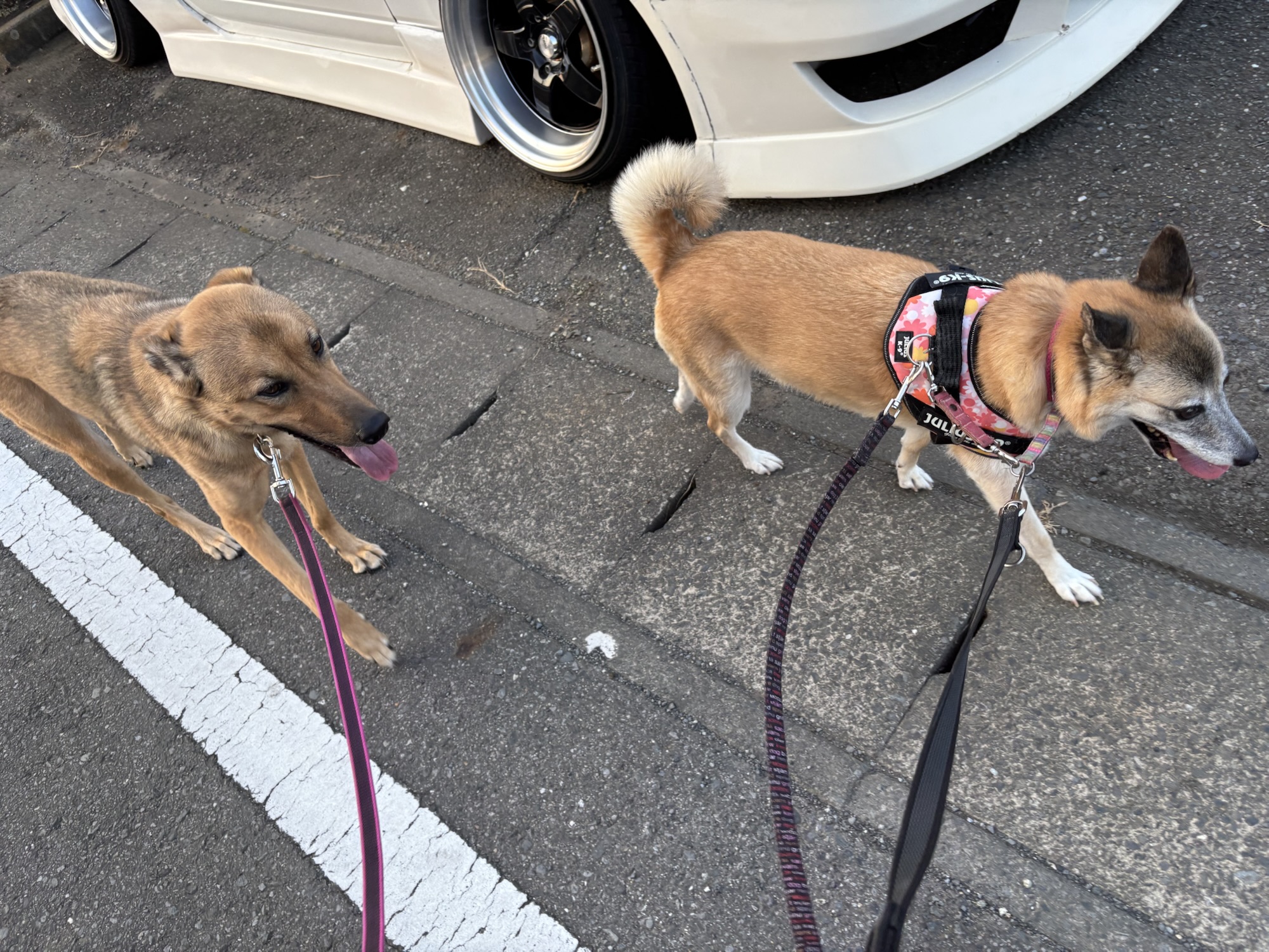 ああ、なんて理想的な「二頭引き」散歩♡