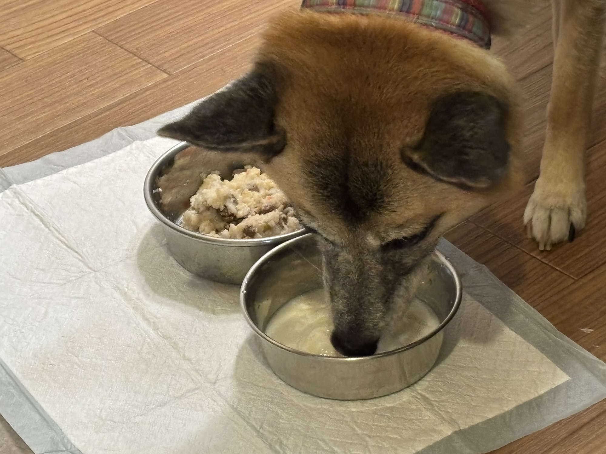 水も飲まないので、ヨーグルトと乳清を出したら舐めていました。