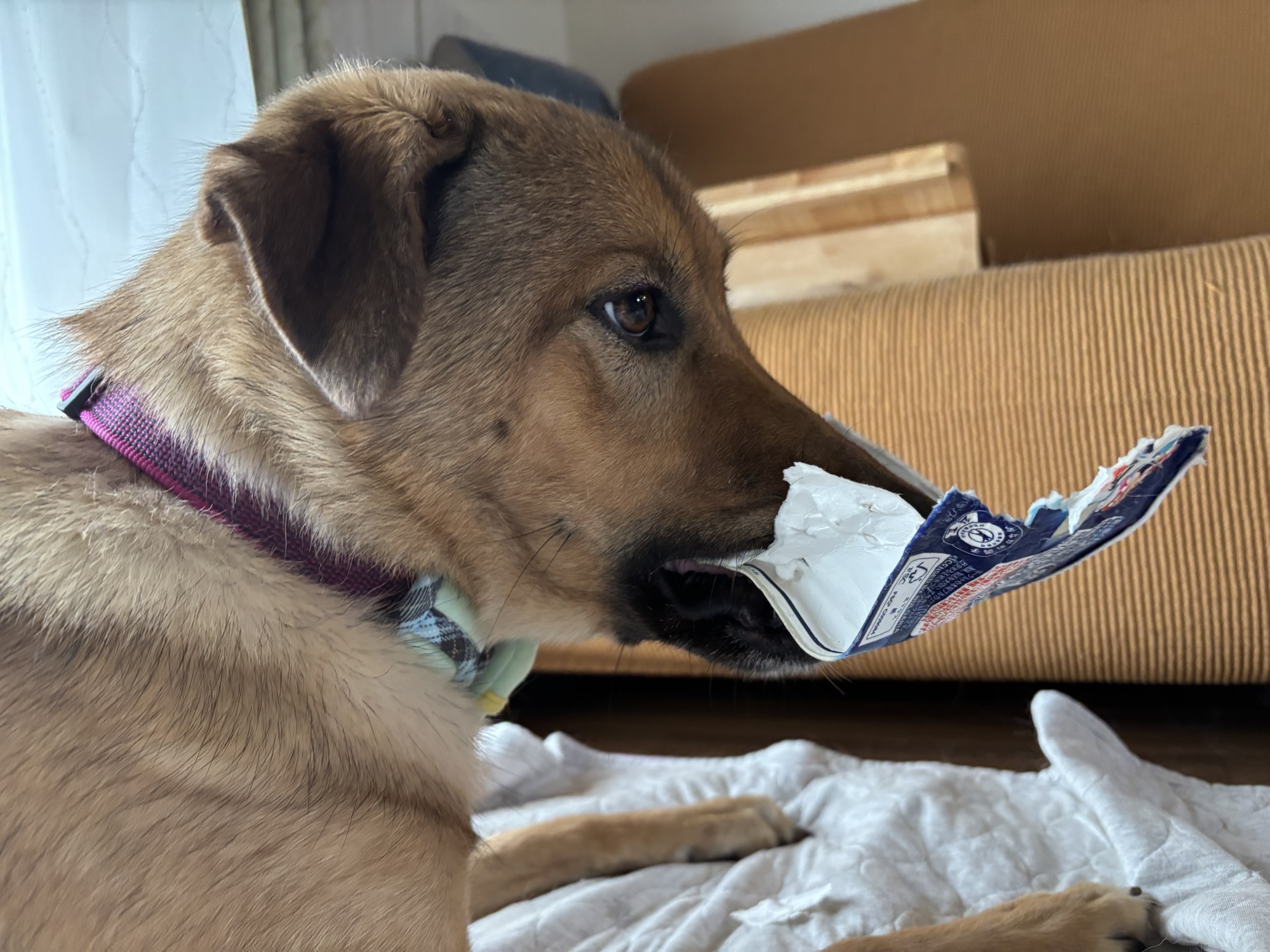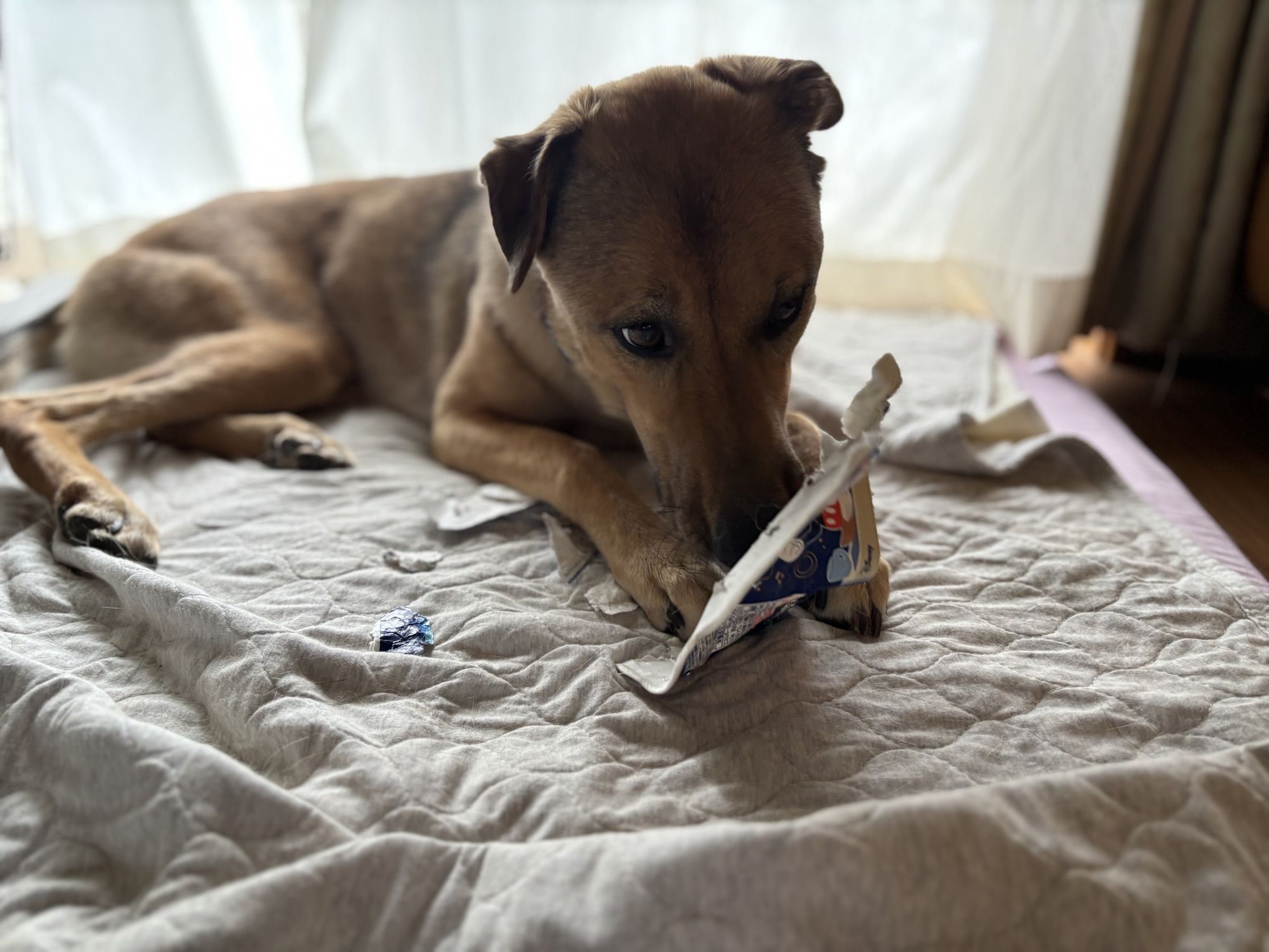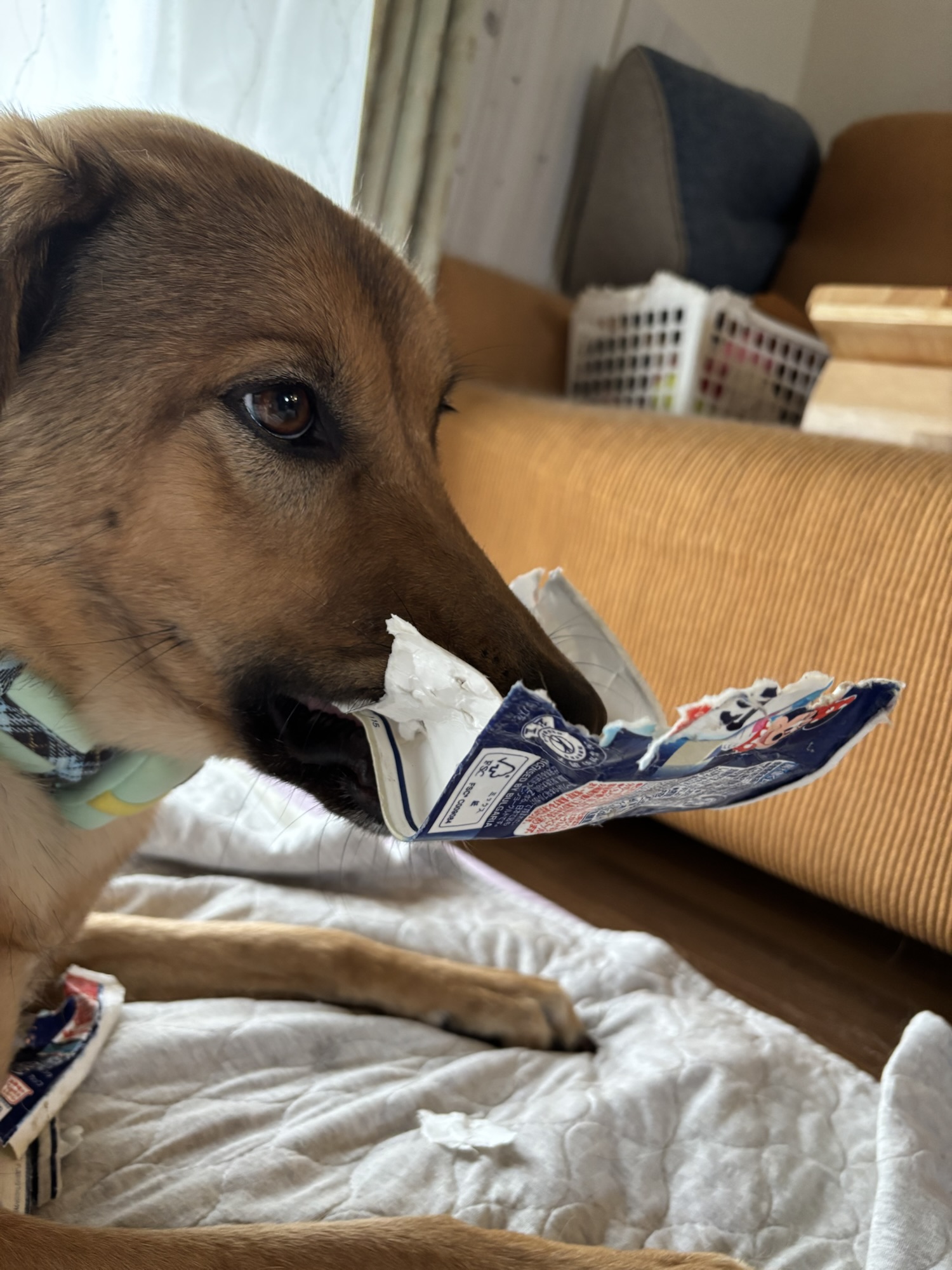 ヨーグルトの箱をビリビリするのが、大好き♡です。
