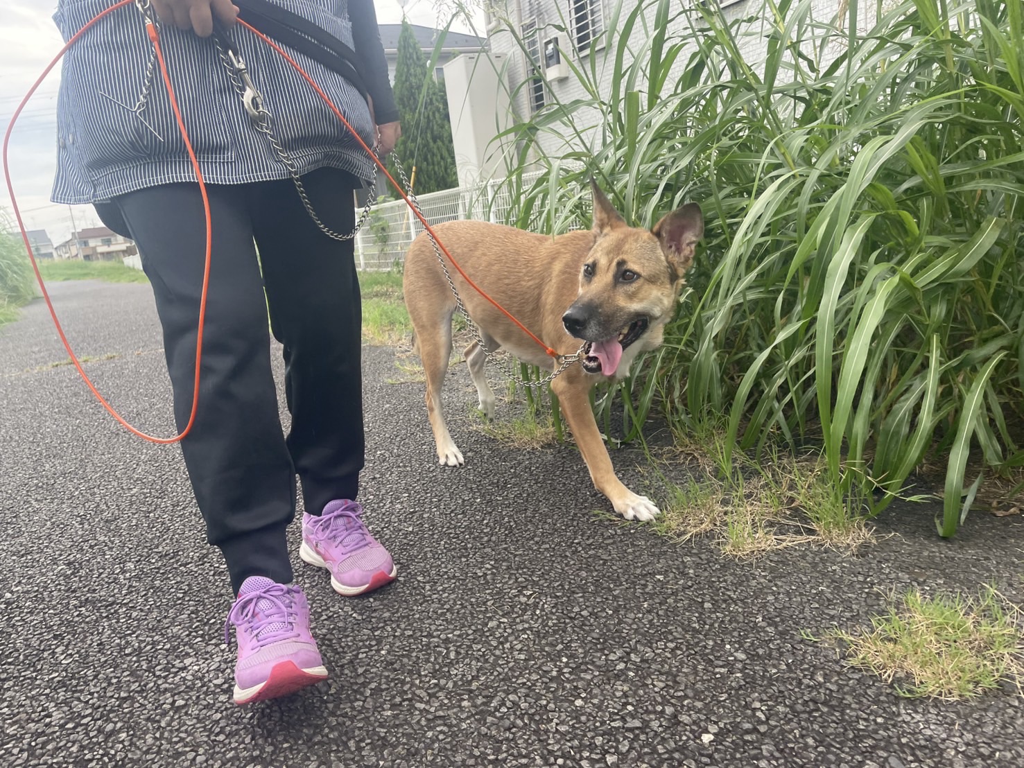 わたしの歩調がゆっくりになると、ミクちゃんもゆっくり歩きます。