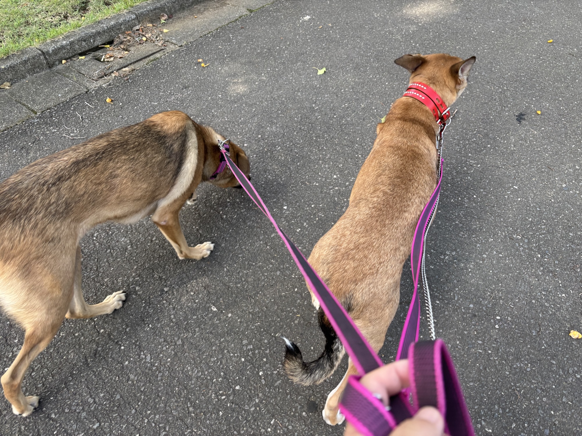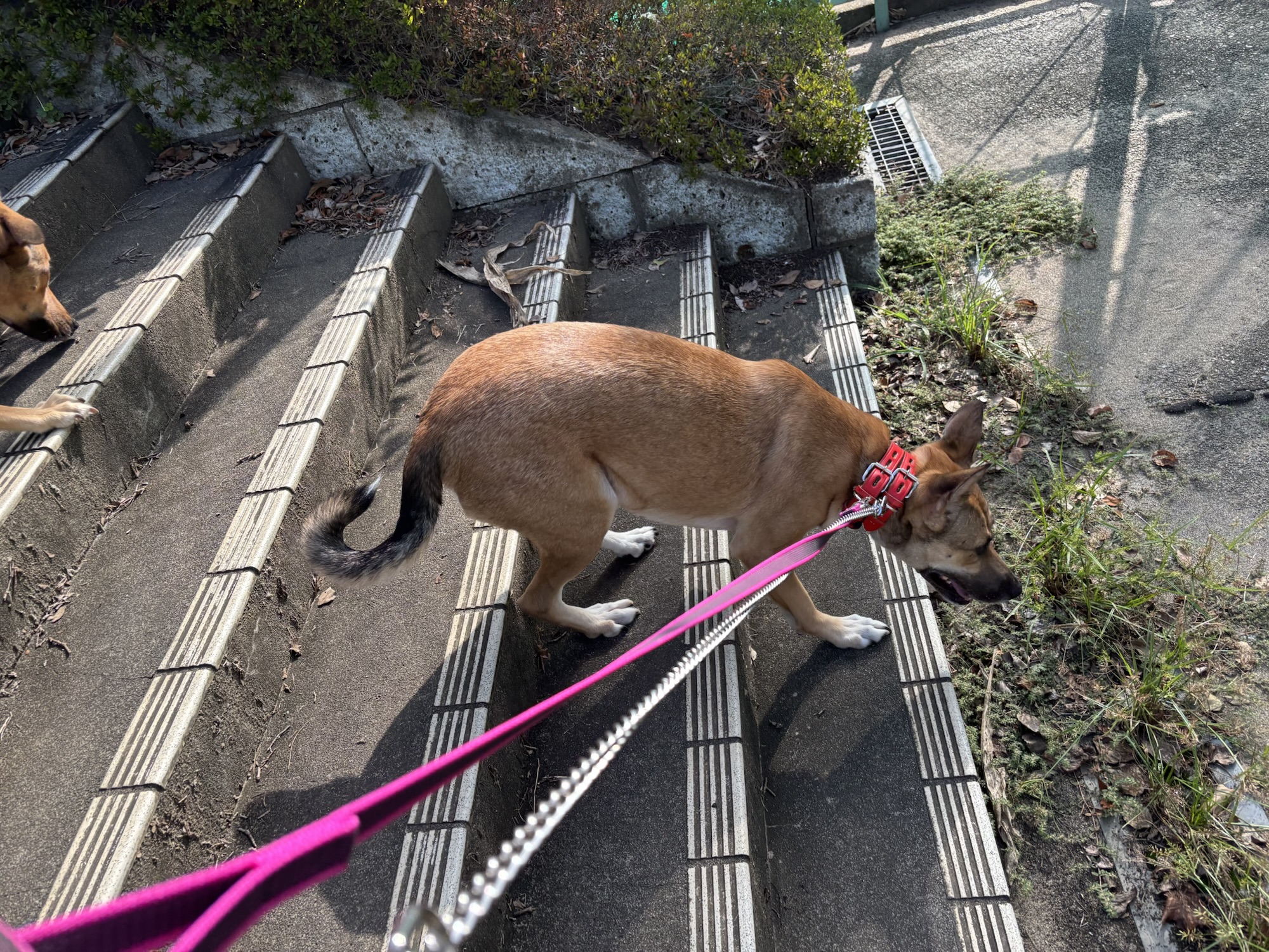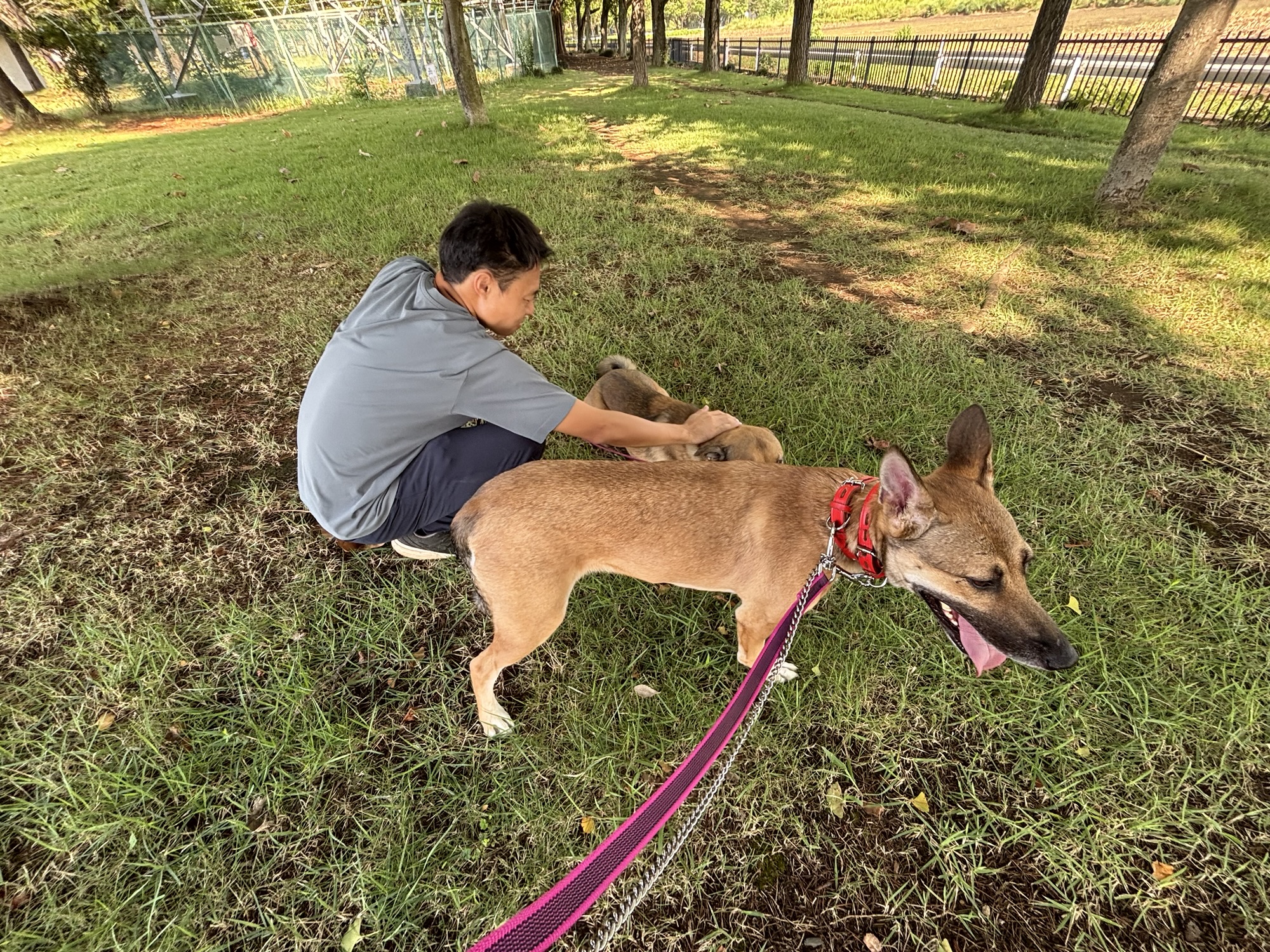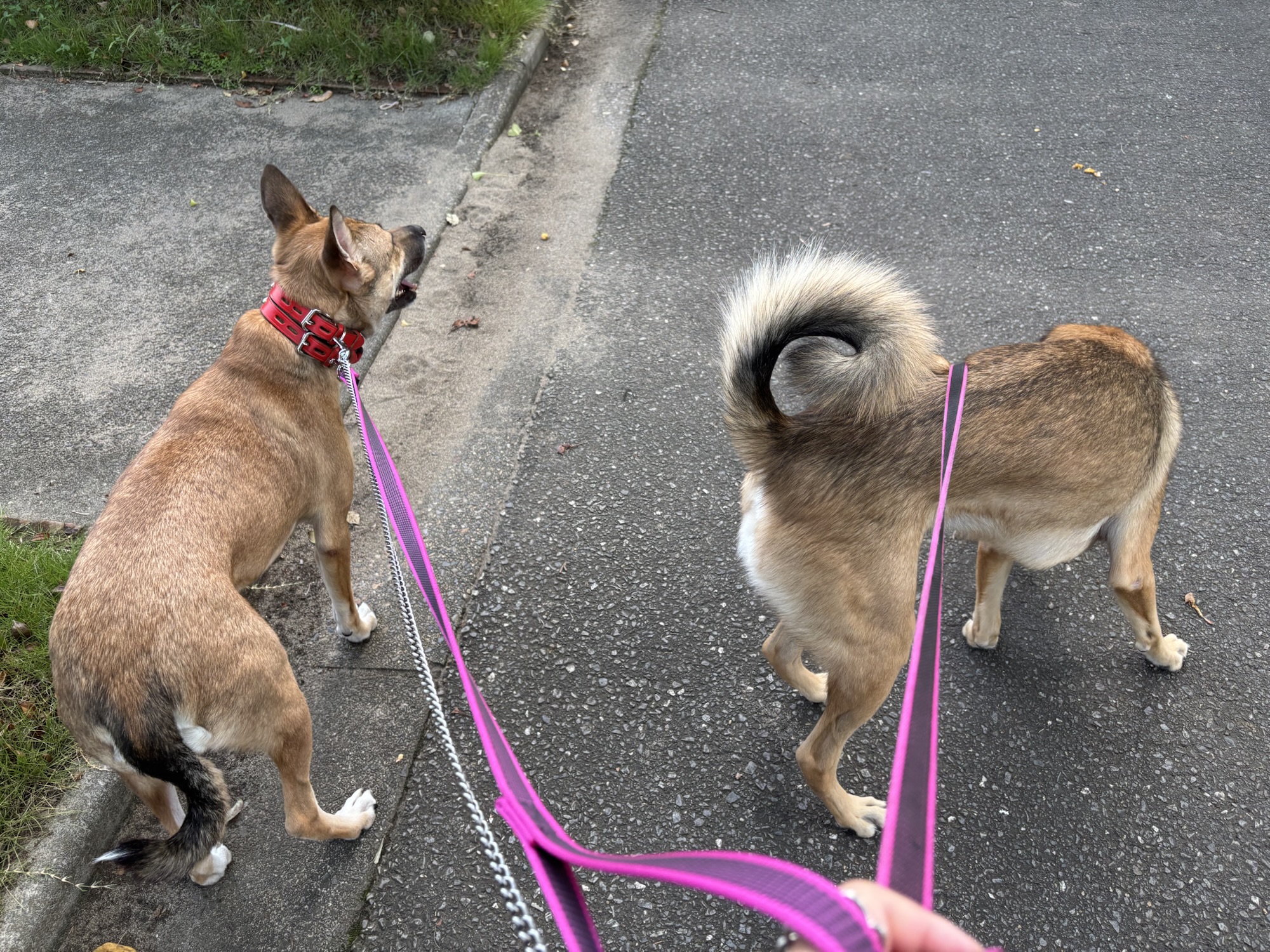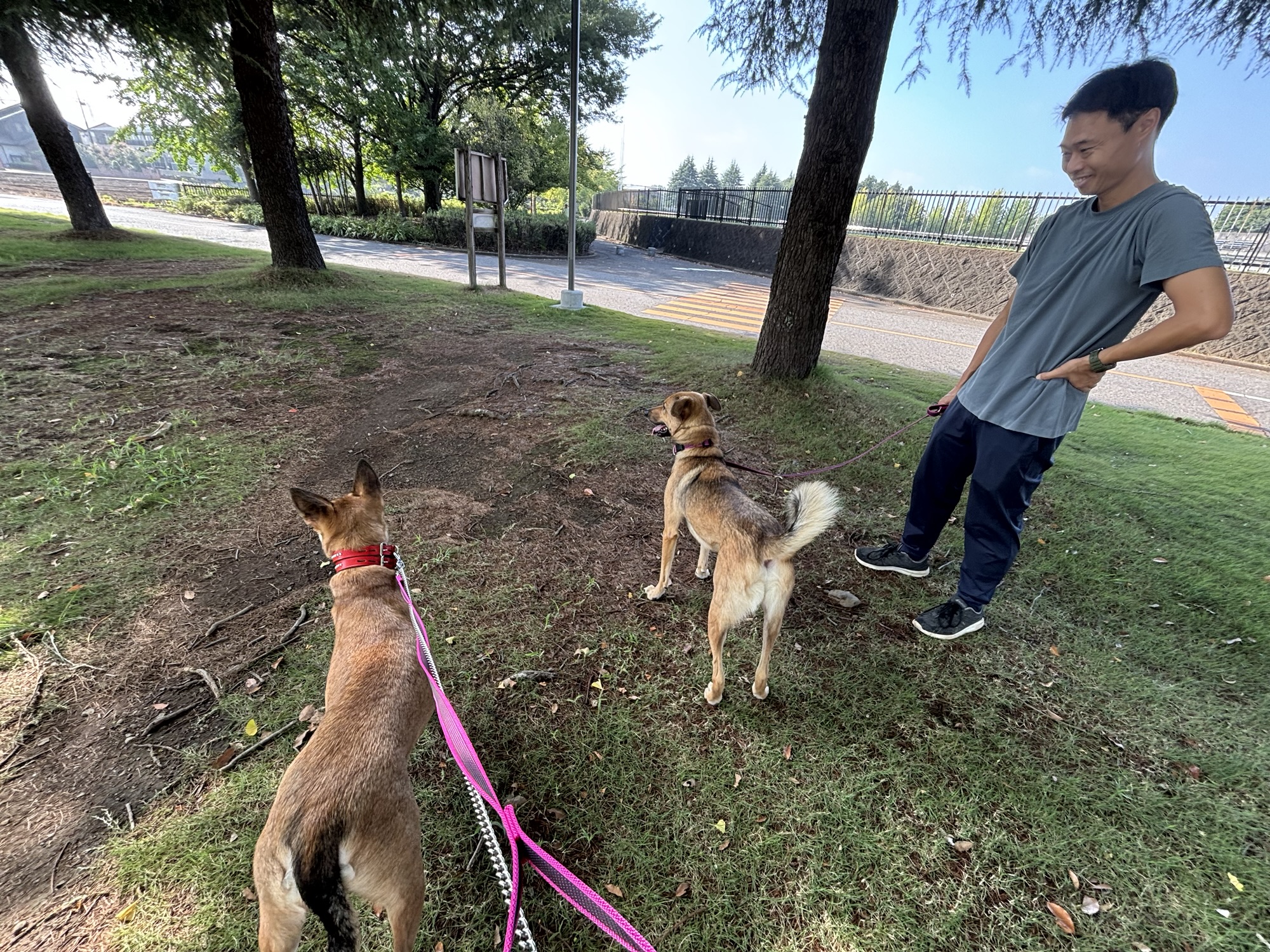 待っている間、大型犬2頭と一緒に歩いて大丈夫かな?ドキドキ