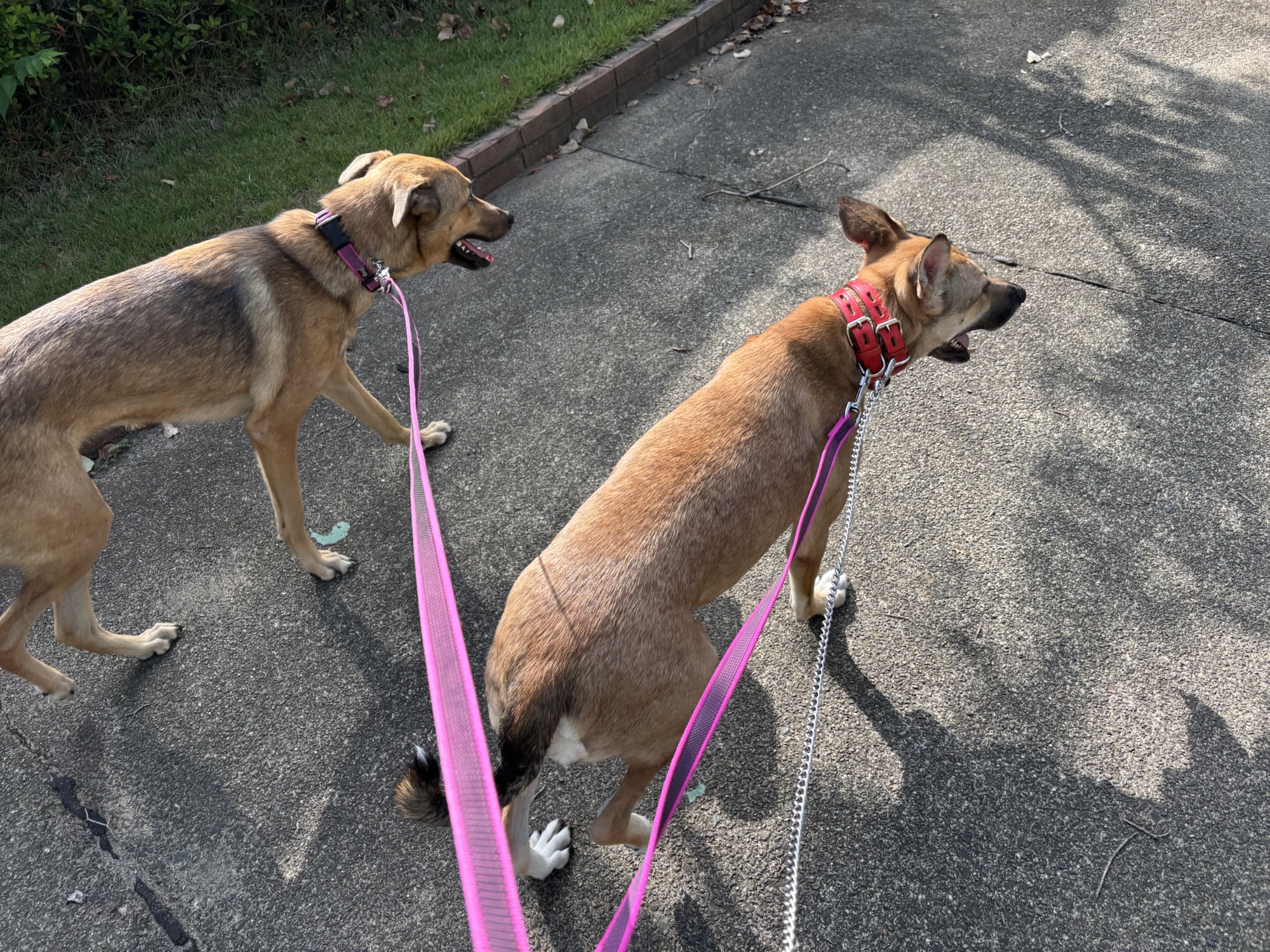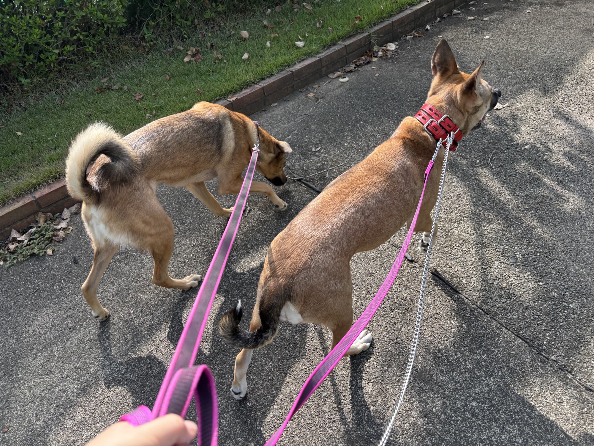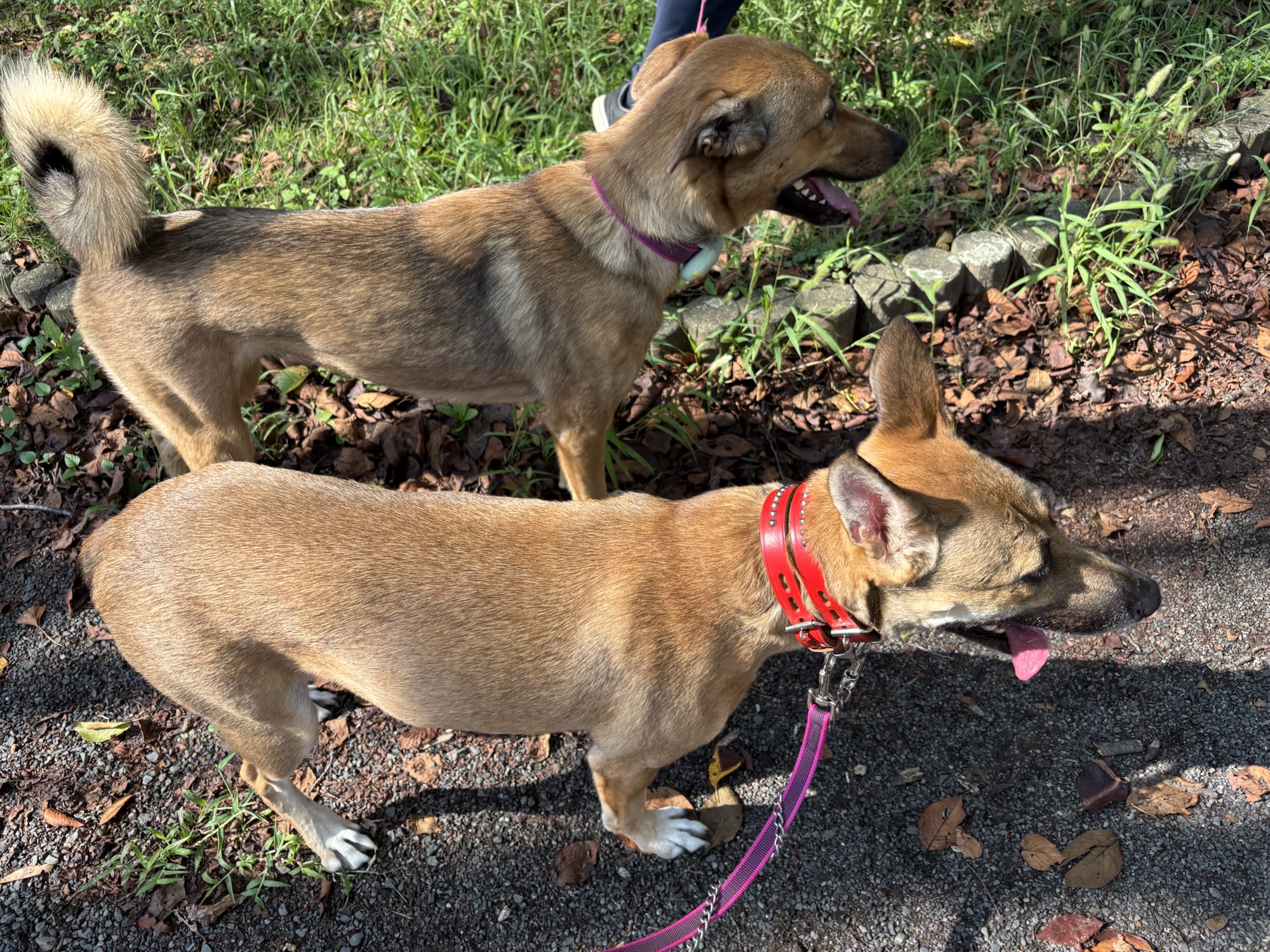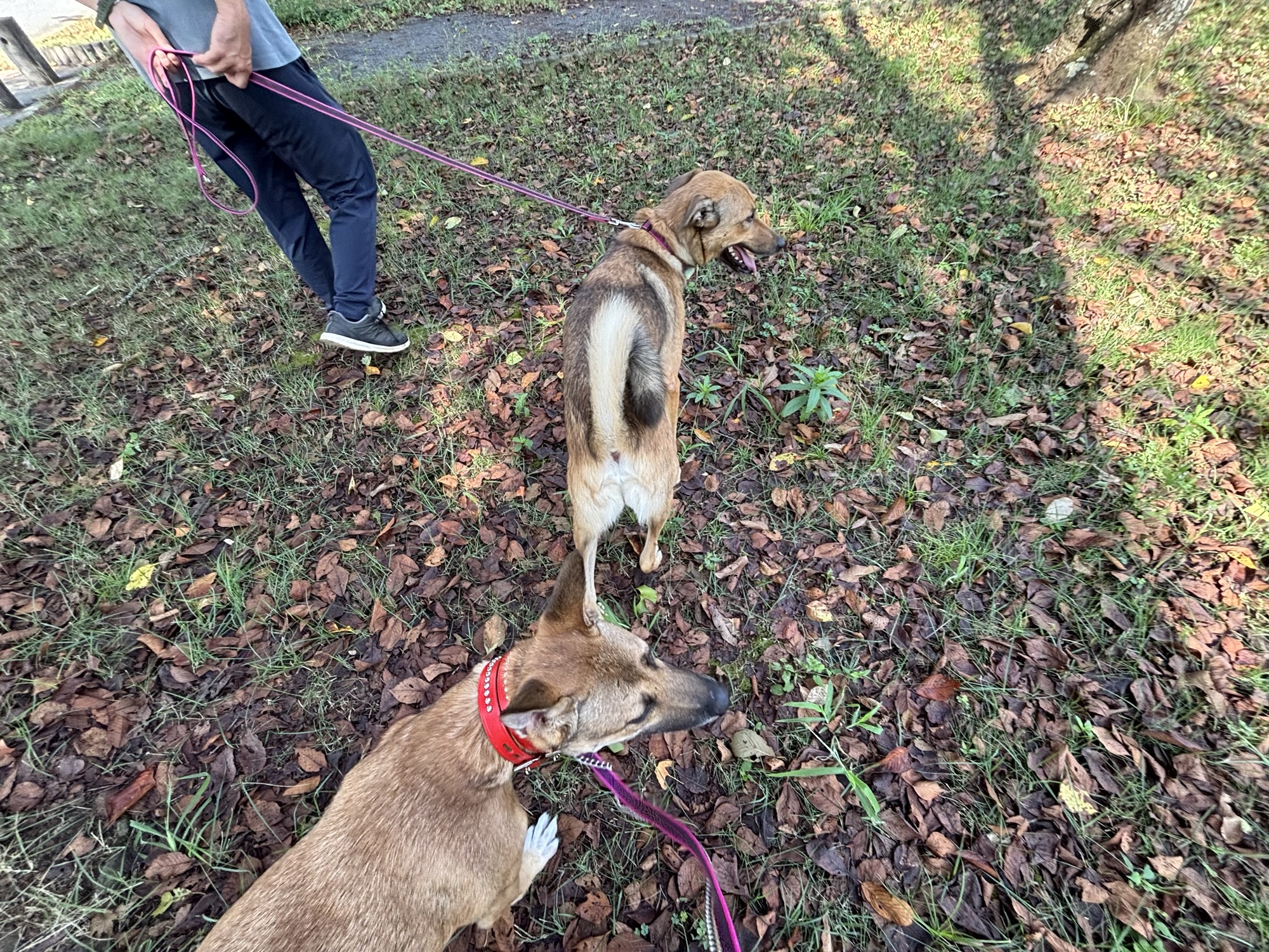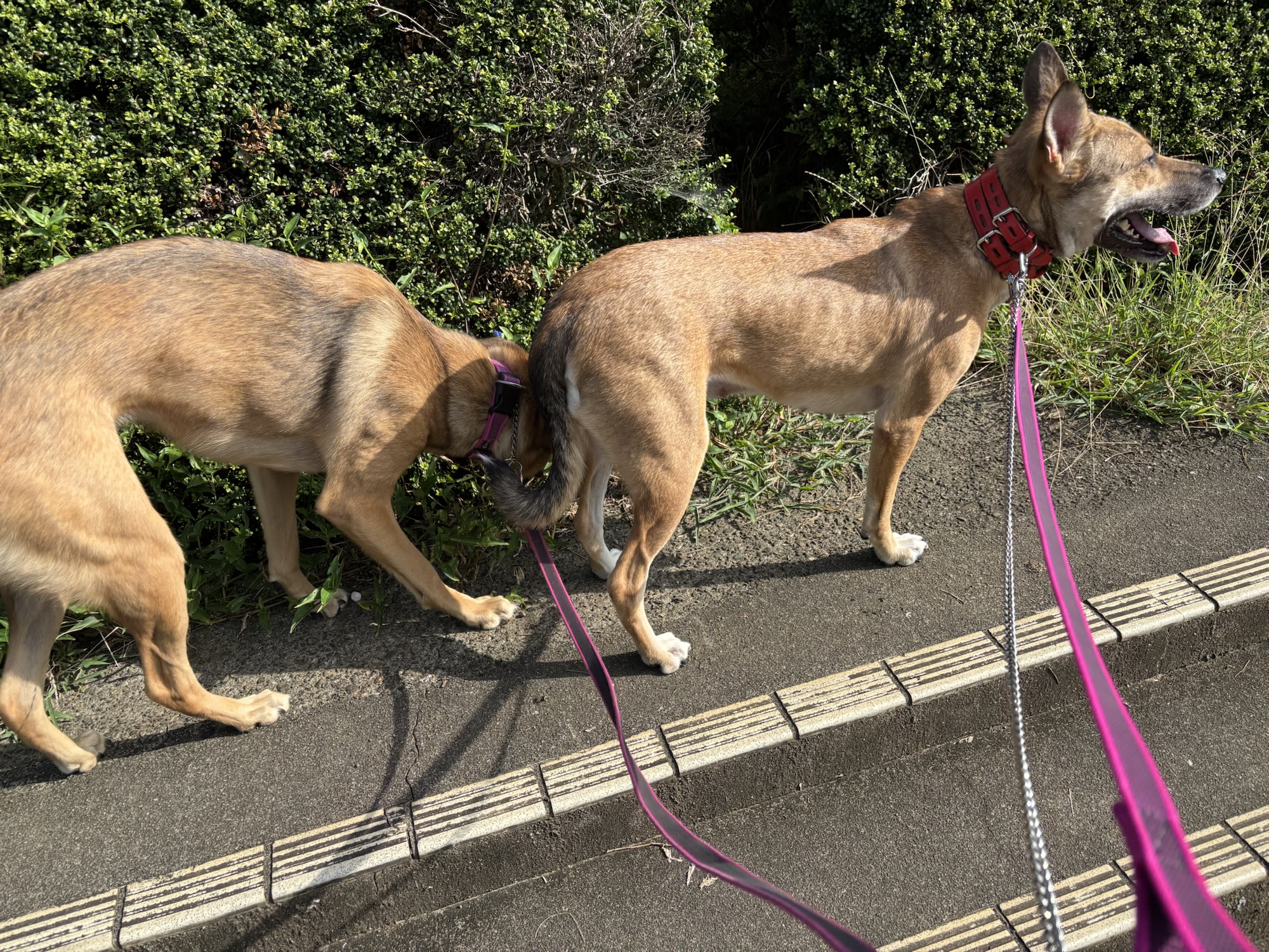 待っている間、大型犬2頭と一緒に歩いて大丈夫かな?ドキドキ