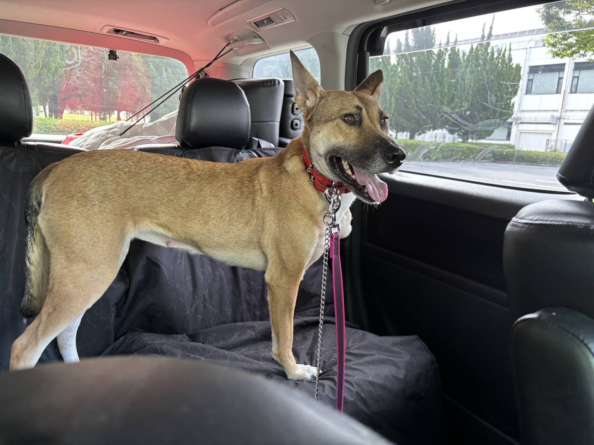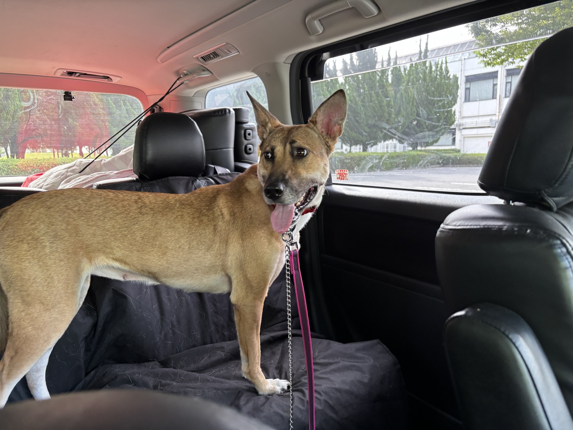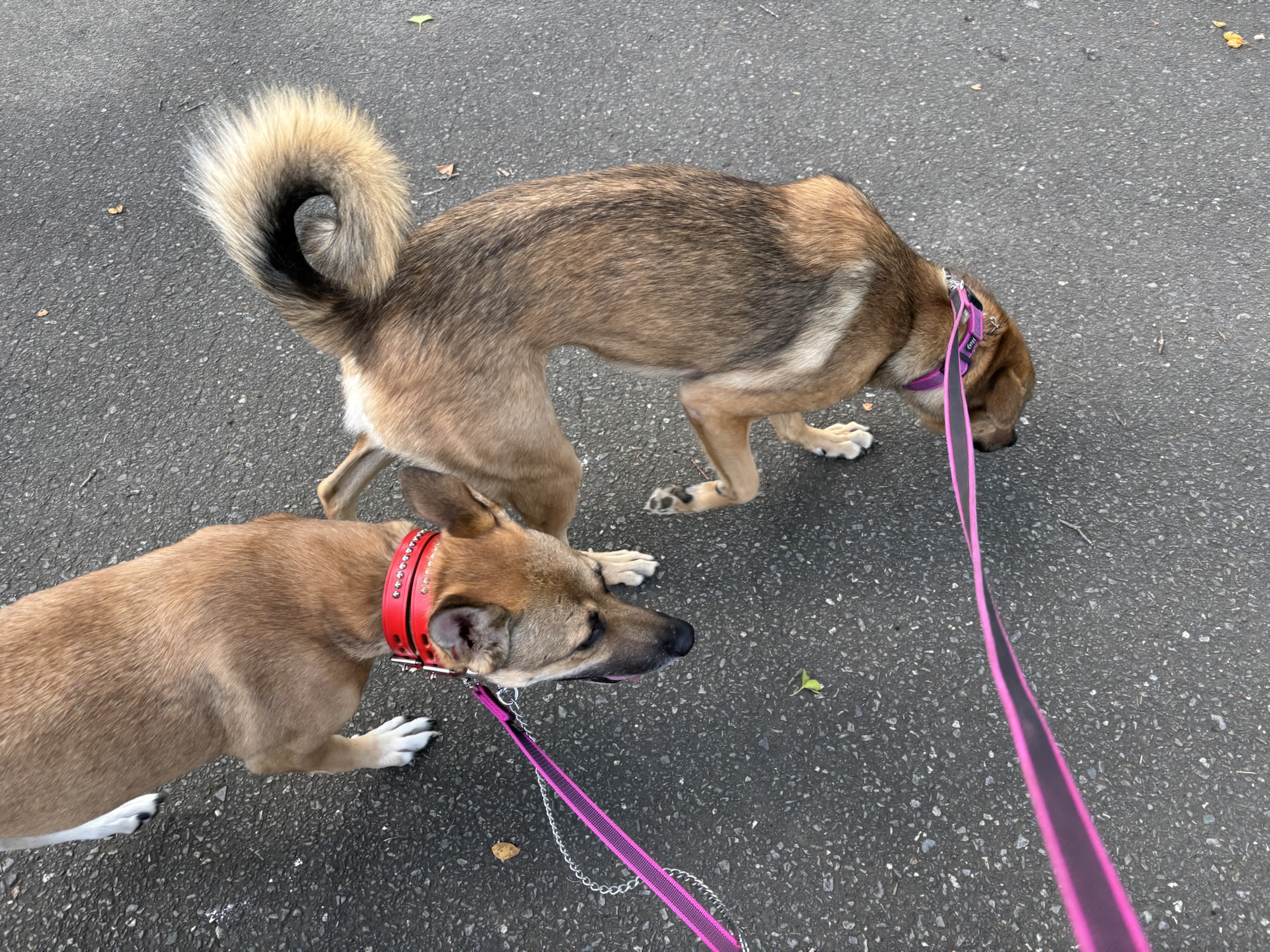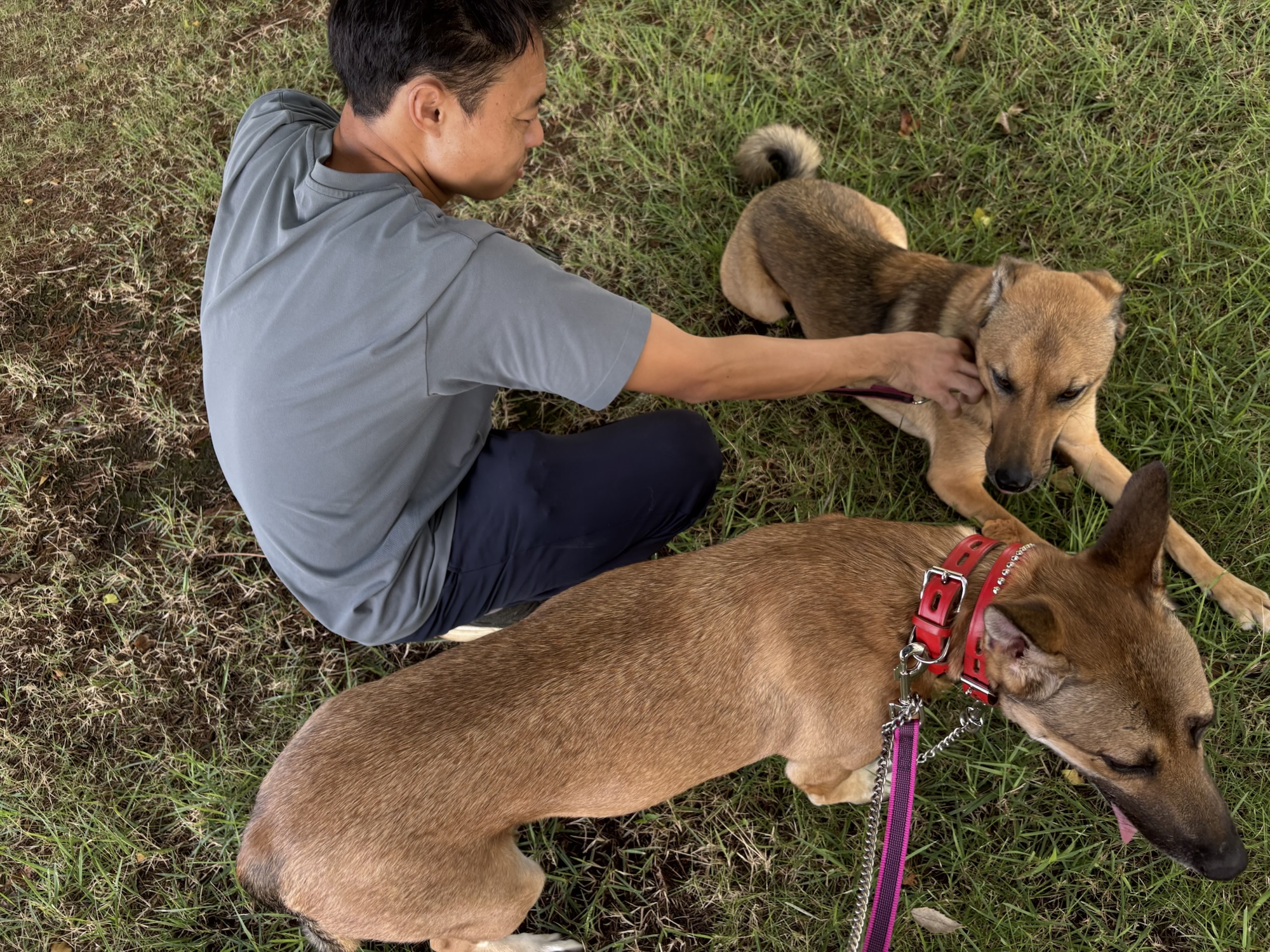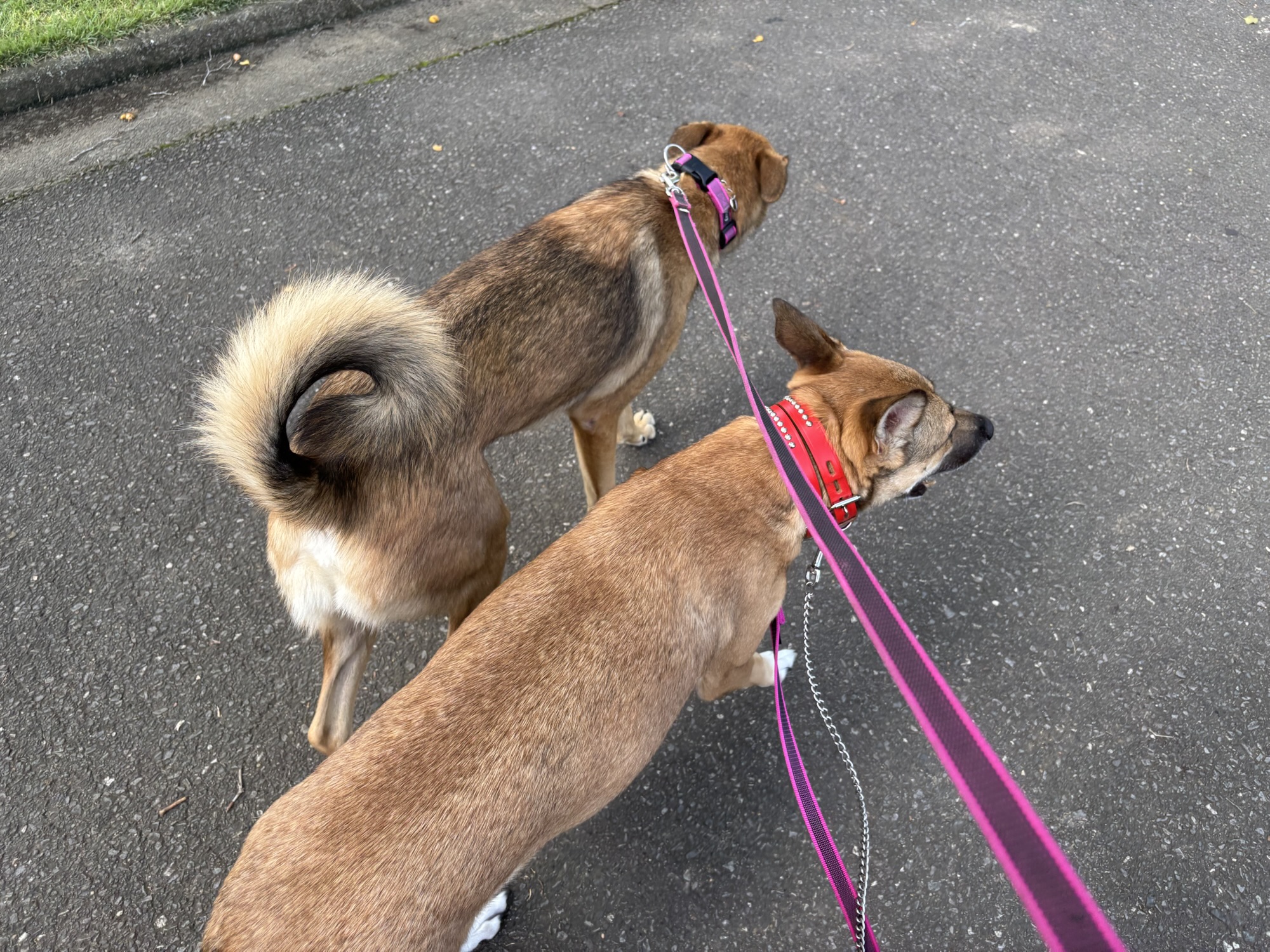 待っている間、大型犬2頭と一緒に歩いて大丈夫かな?ドキドキ