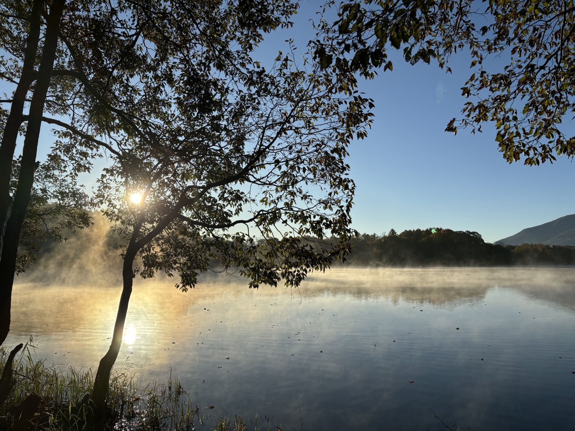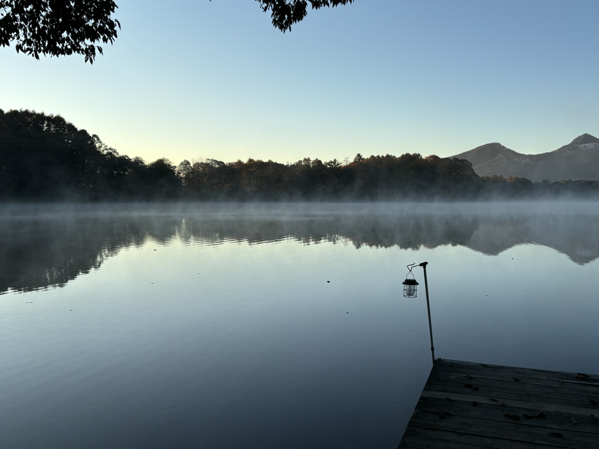 裏磐梯一早い、美味しいモーニングコーヒーを飲みながら、早朝の景色を愛でる