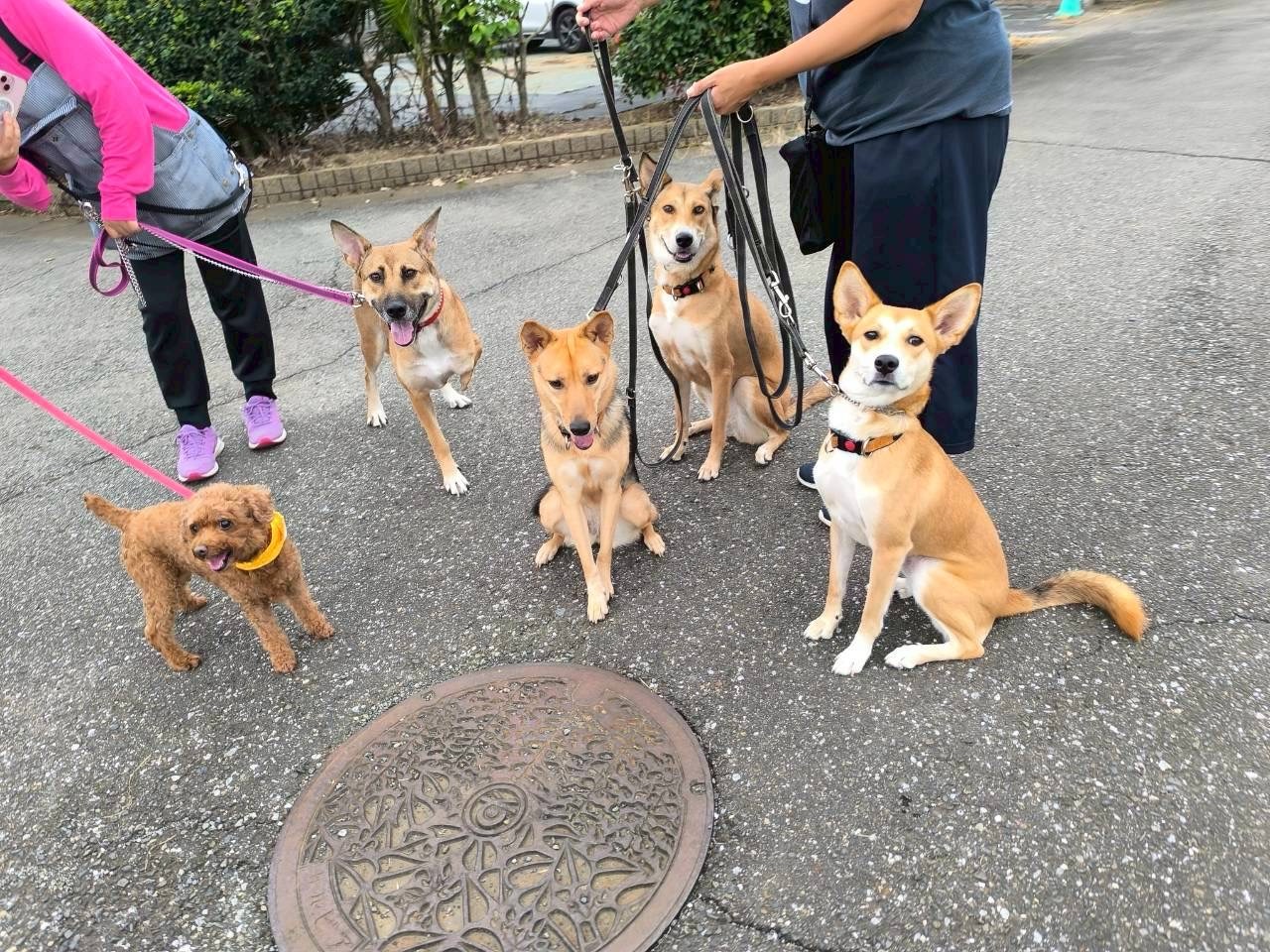 ちゃちゃつくママさんの指示で、綺麗に並んでお座りしてます。