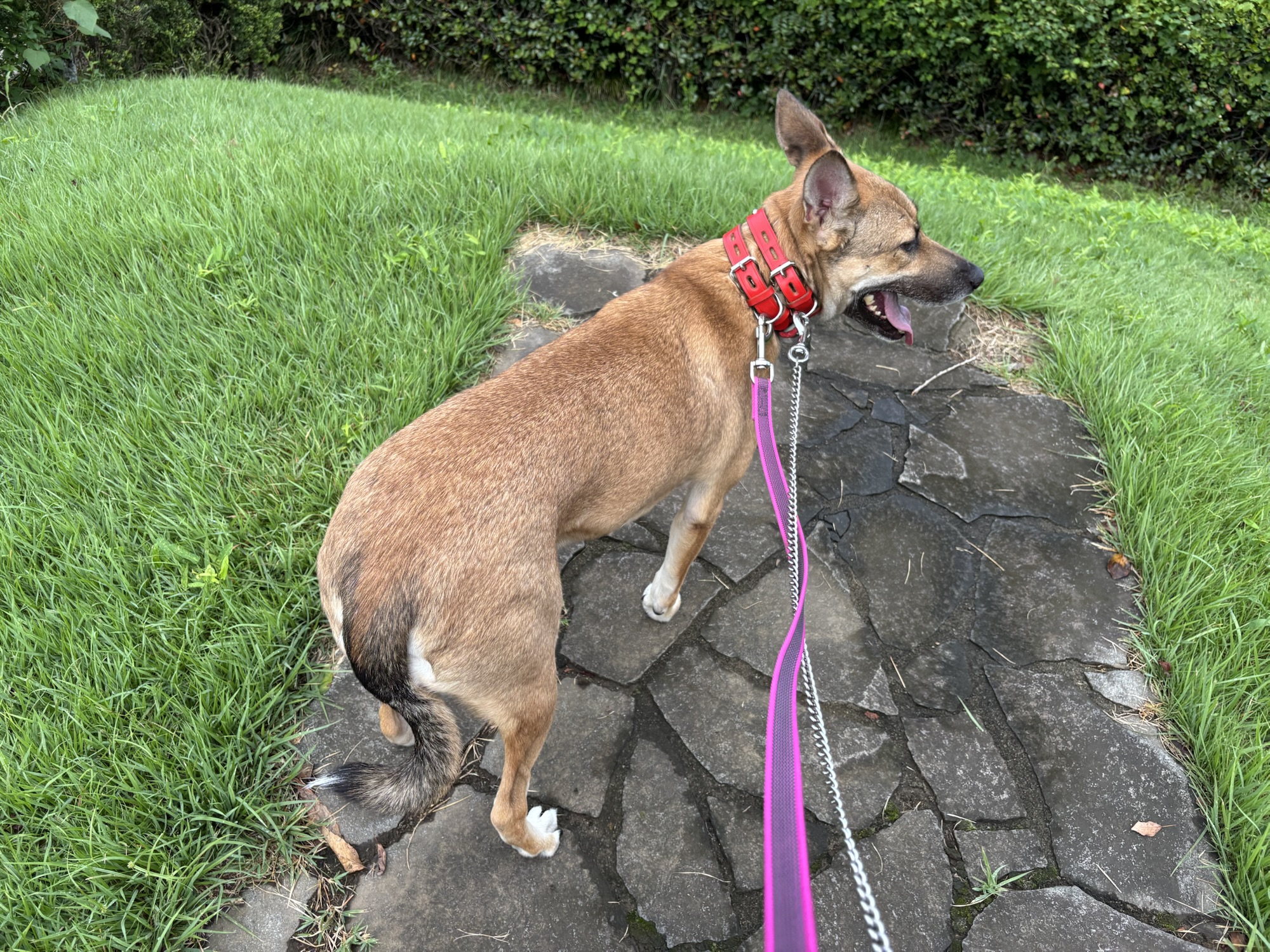 この頃、玄関先でしっぽを振るようになりました。