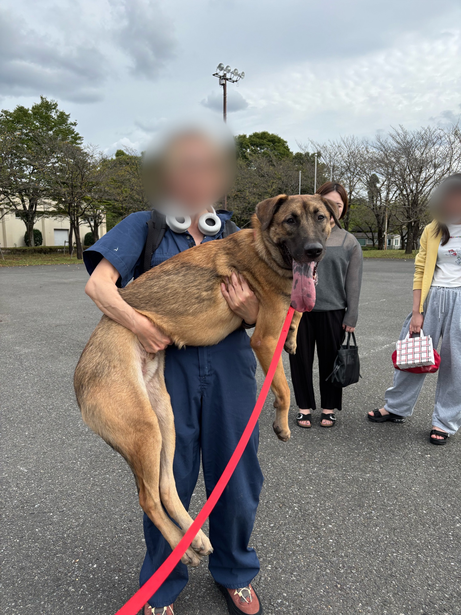 そして、抱っこされるラブグッドくん。(25.5キロ以上あるかも・・・)