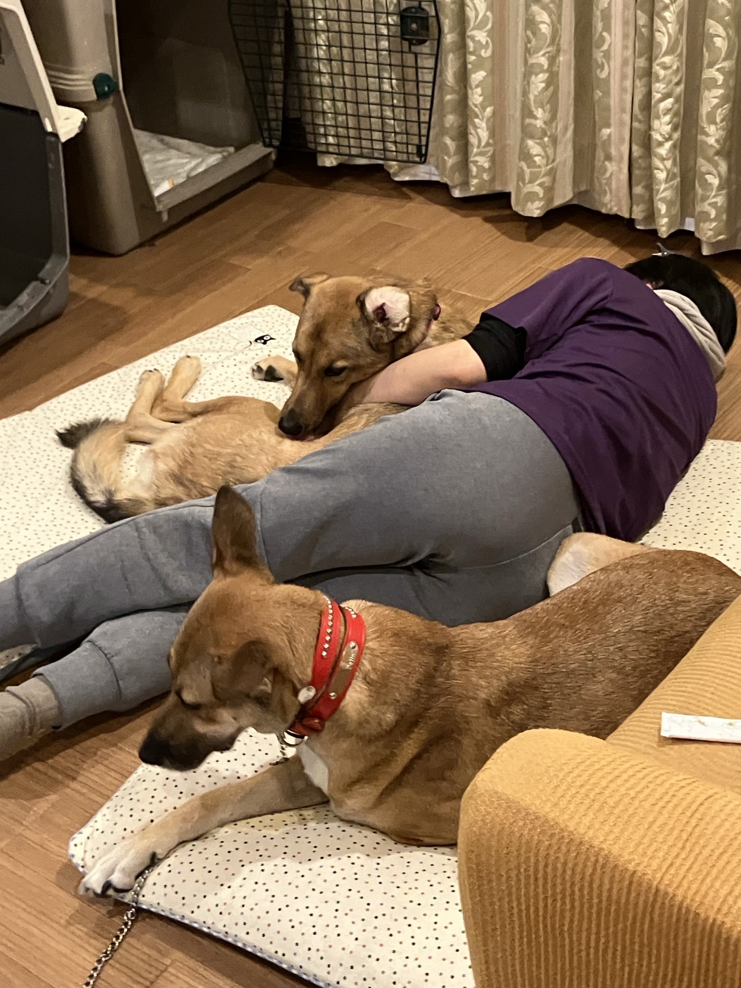 ああ、このまま犬たちと一緒に眠ってしまいたい。。。