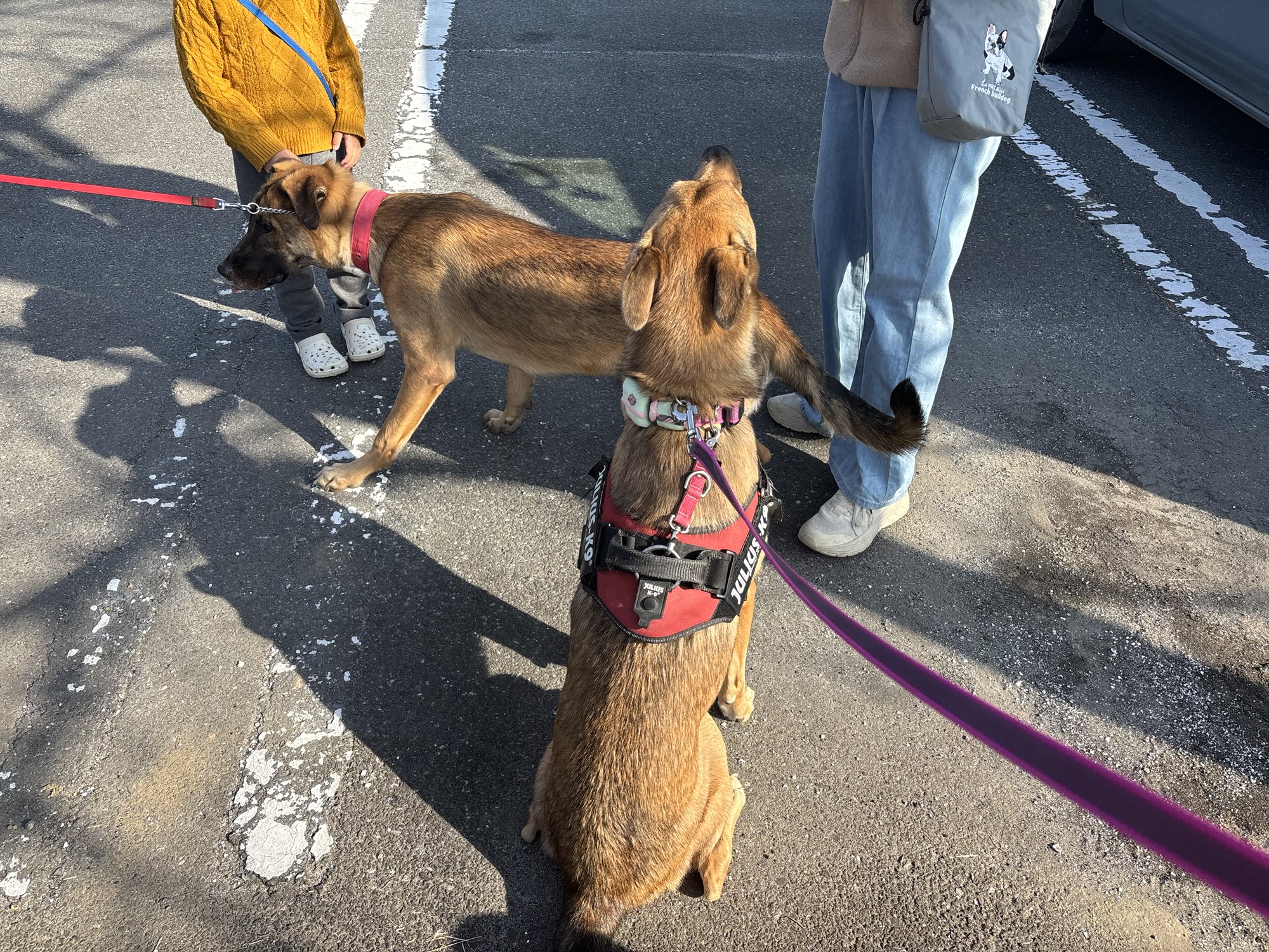 応援団の、まめちゃん&たまごくん(中庭家の犬たち)