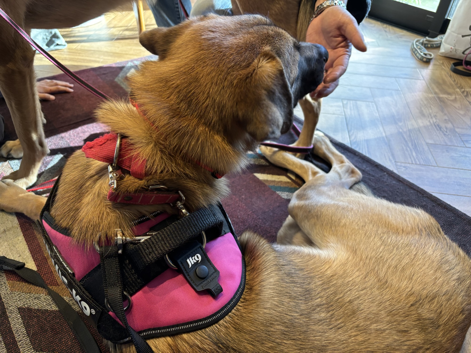 素敵なお宅にお邪魔して、犬具の装着を練習していただきました。