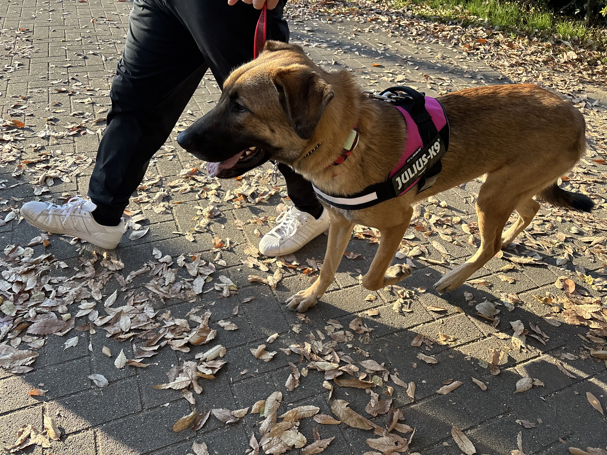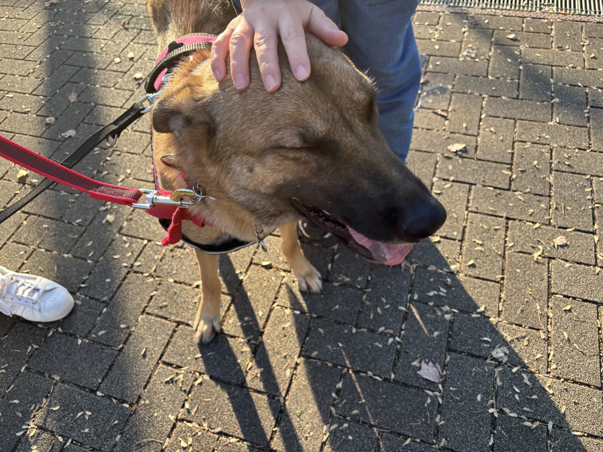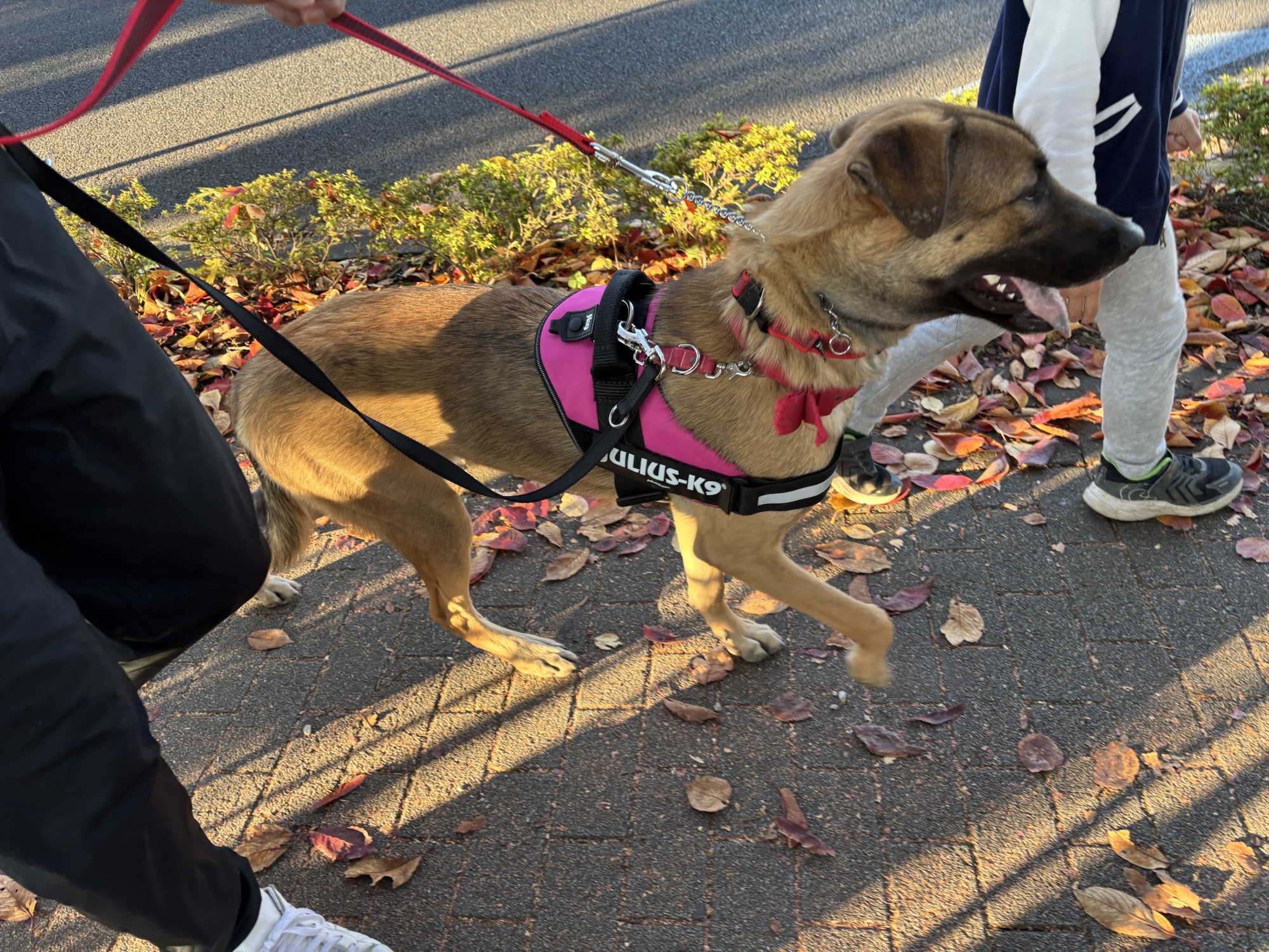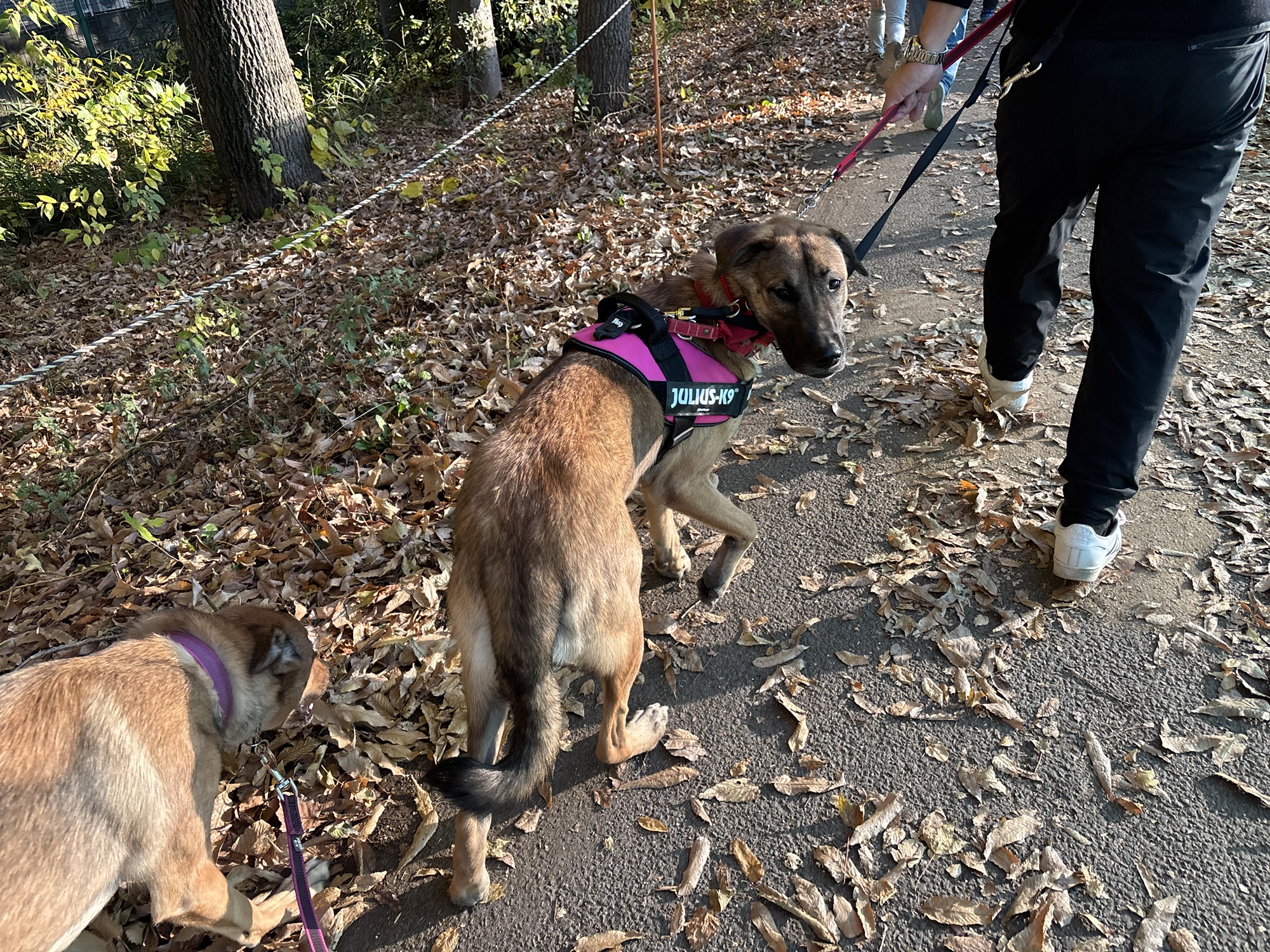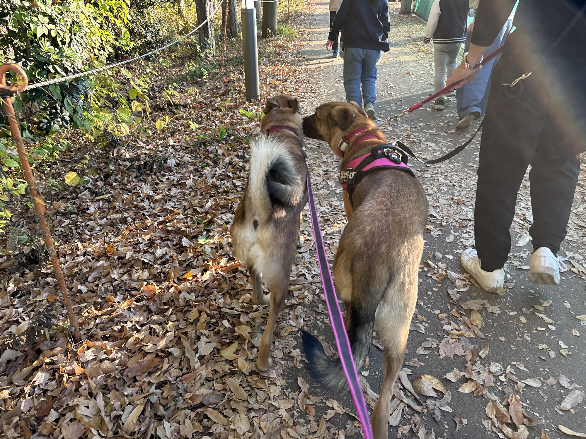 枯れ葉のカサカサ音と、初めての場所に驚いたのか