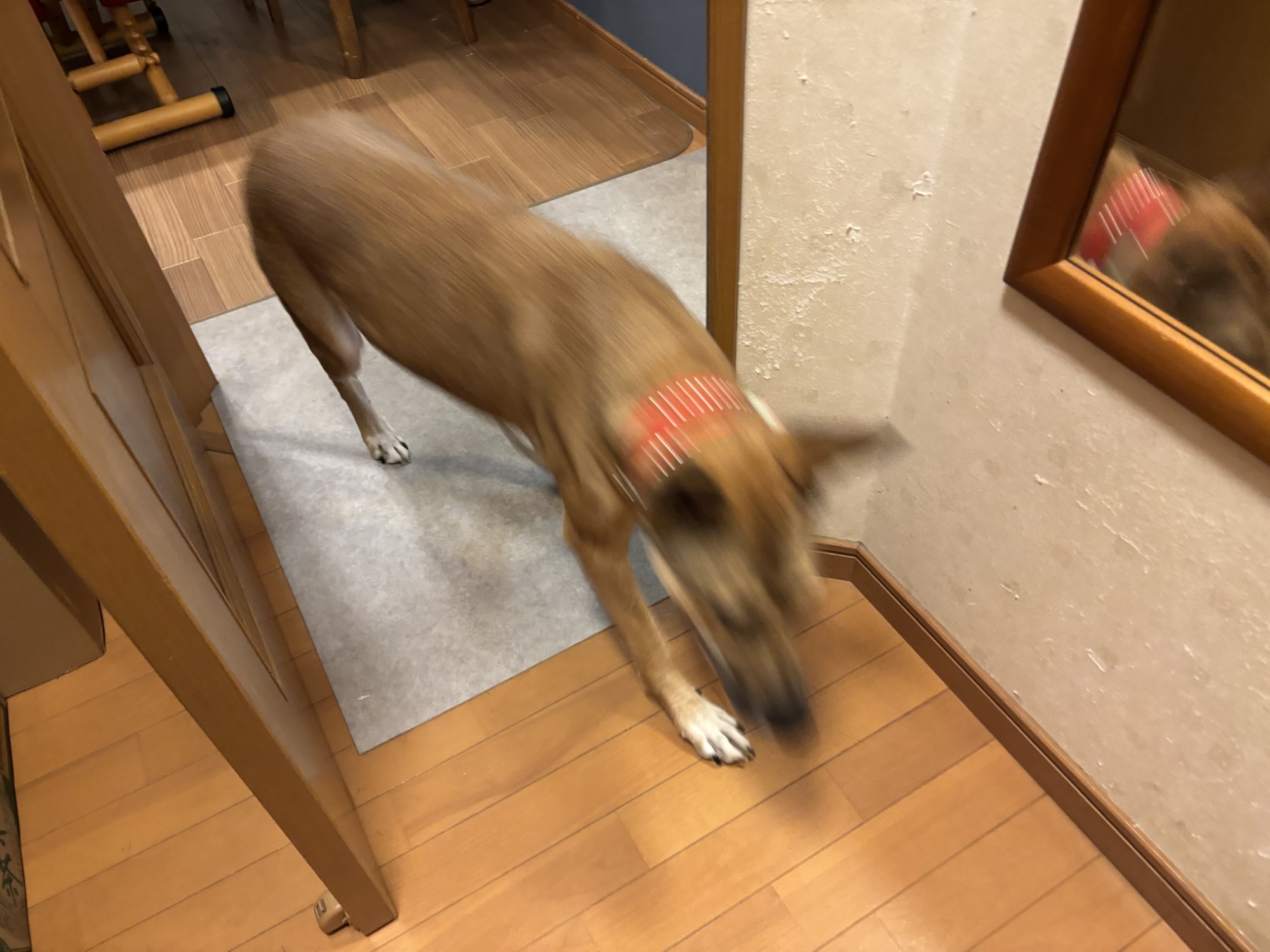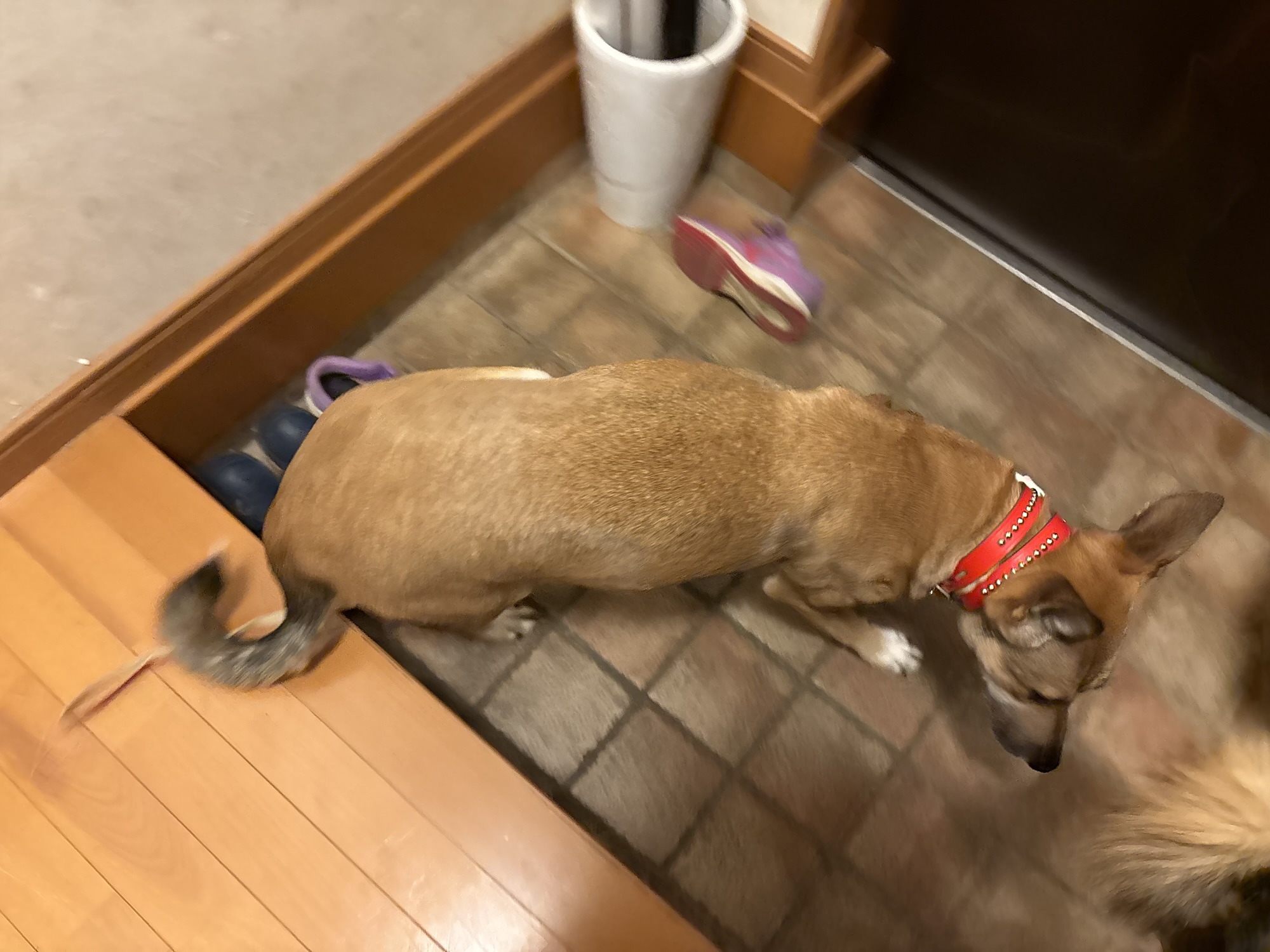 おお!ドッグベッドの女王が、玄関ダッシュだぞーーー!!!