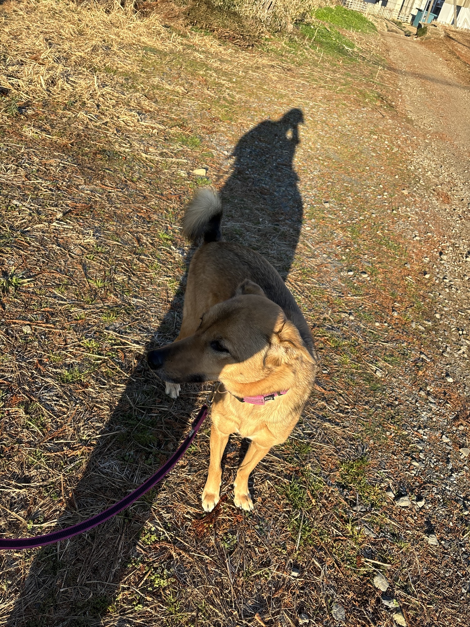 トゥルーたんとも、長~い影の写真を撮ろうと