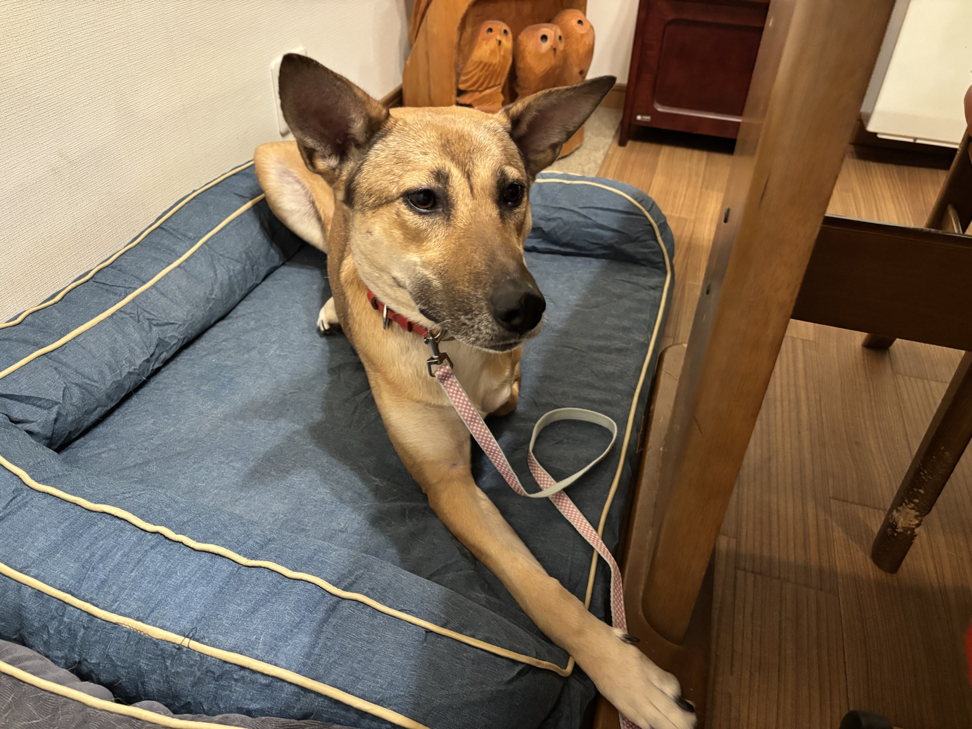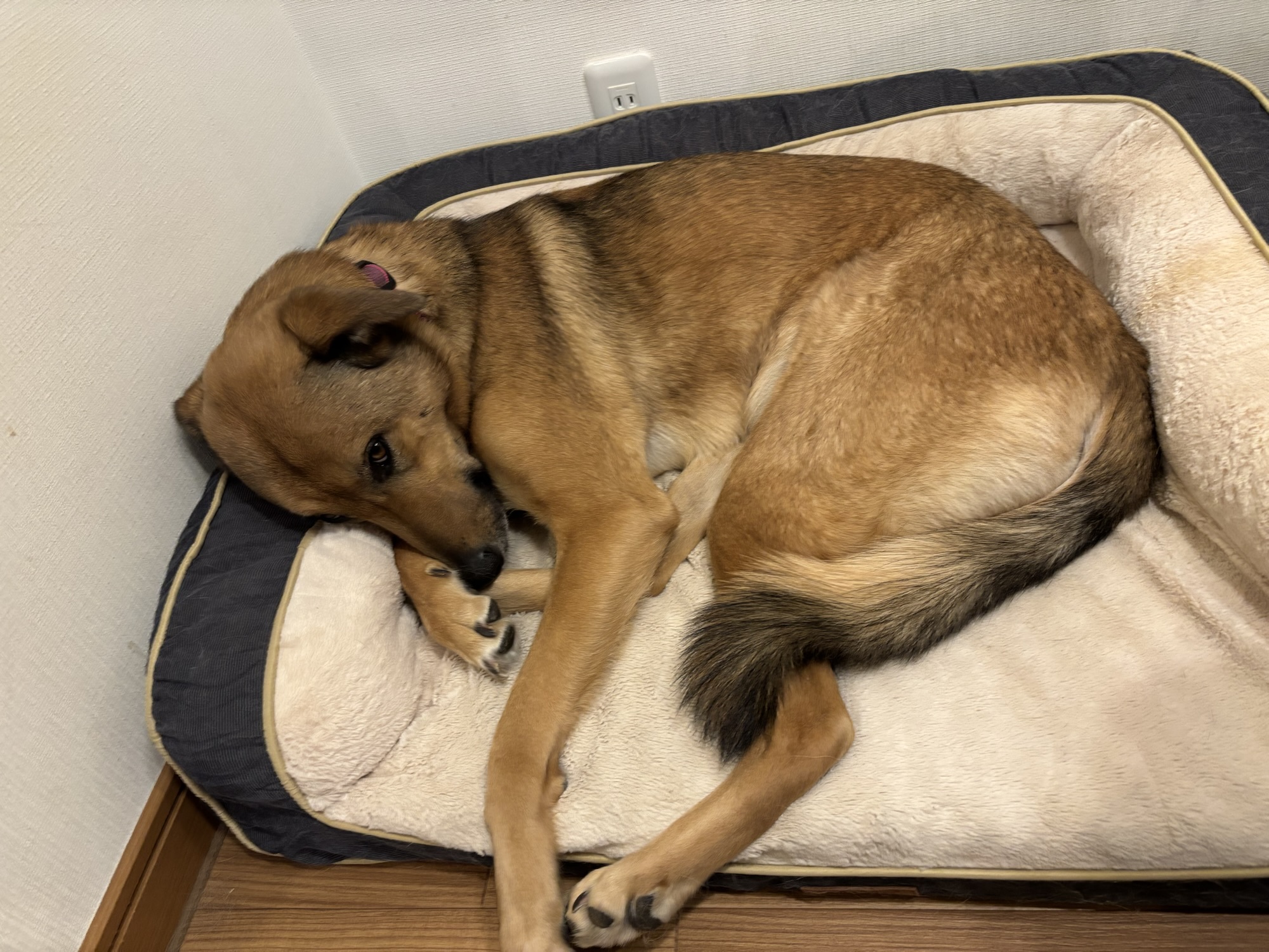ミクちゃん、ドッグベッドでゆる~い運をしていたらしく