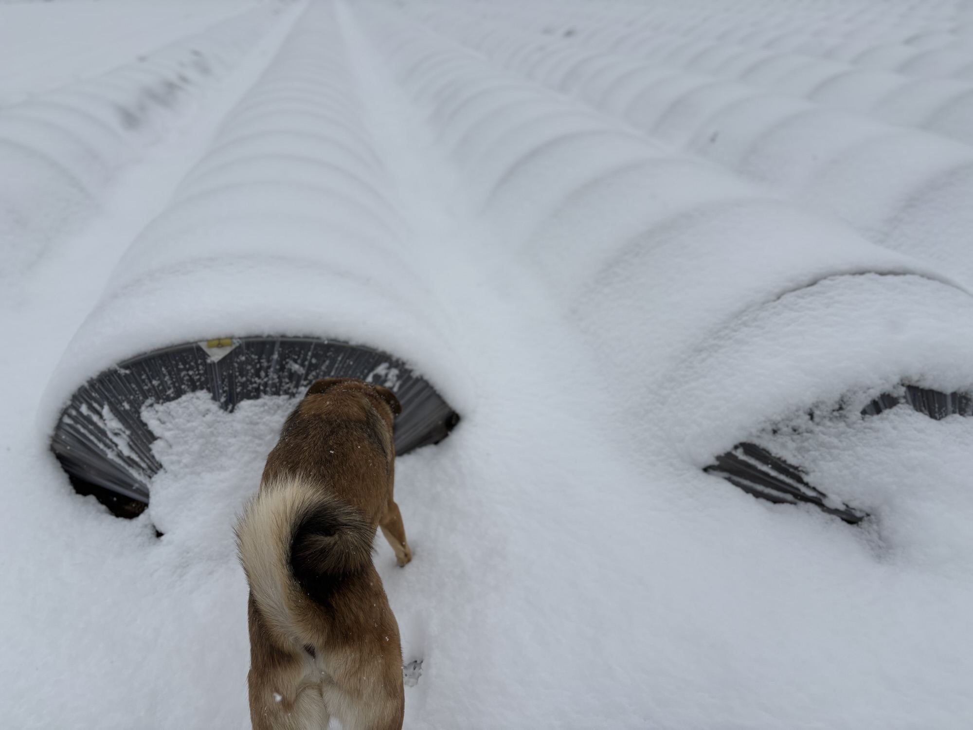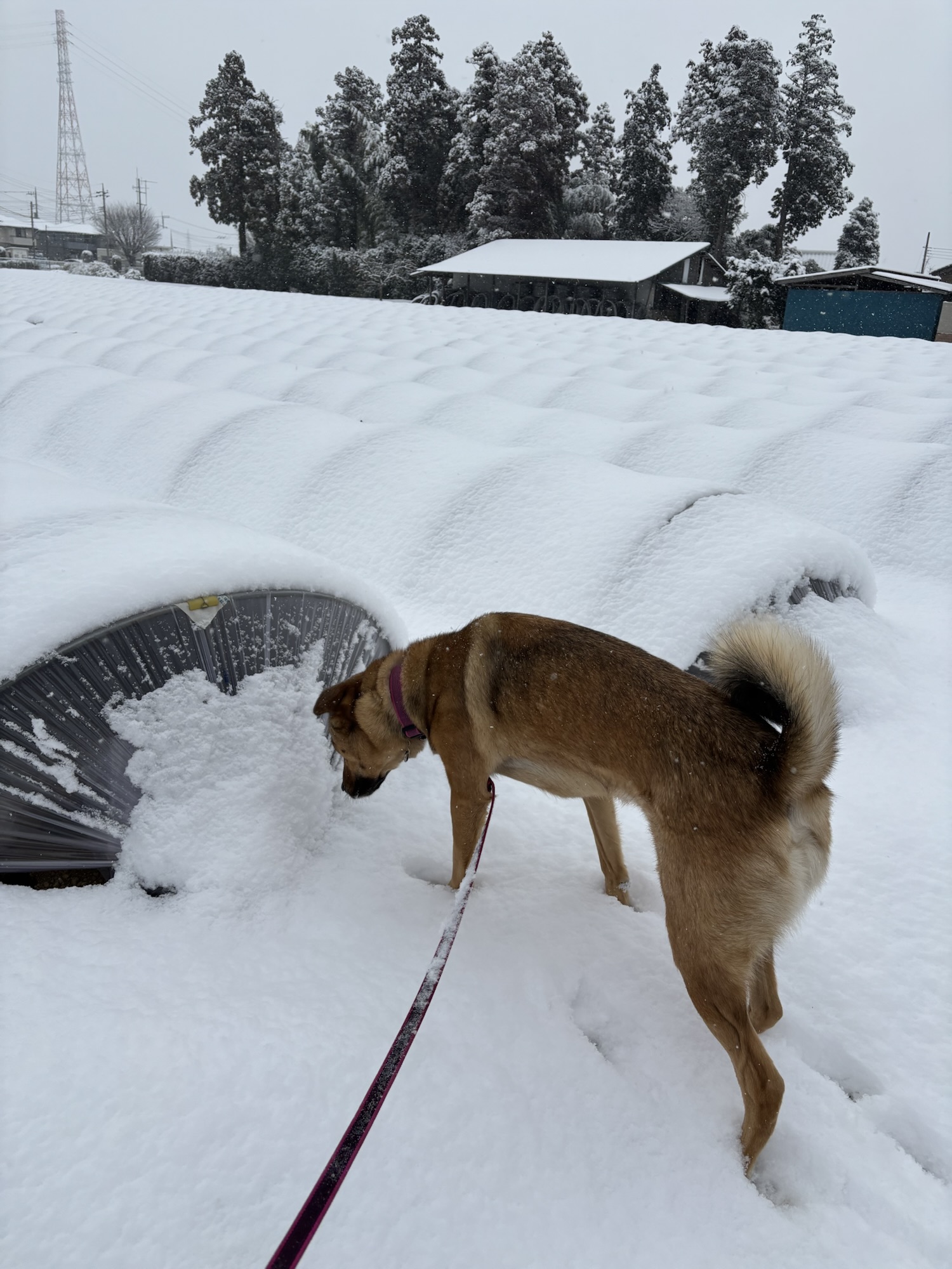 ビニールハウスの雪の積もり方も、独特でおもしろい。
