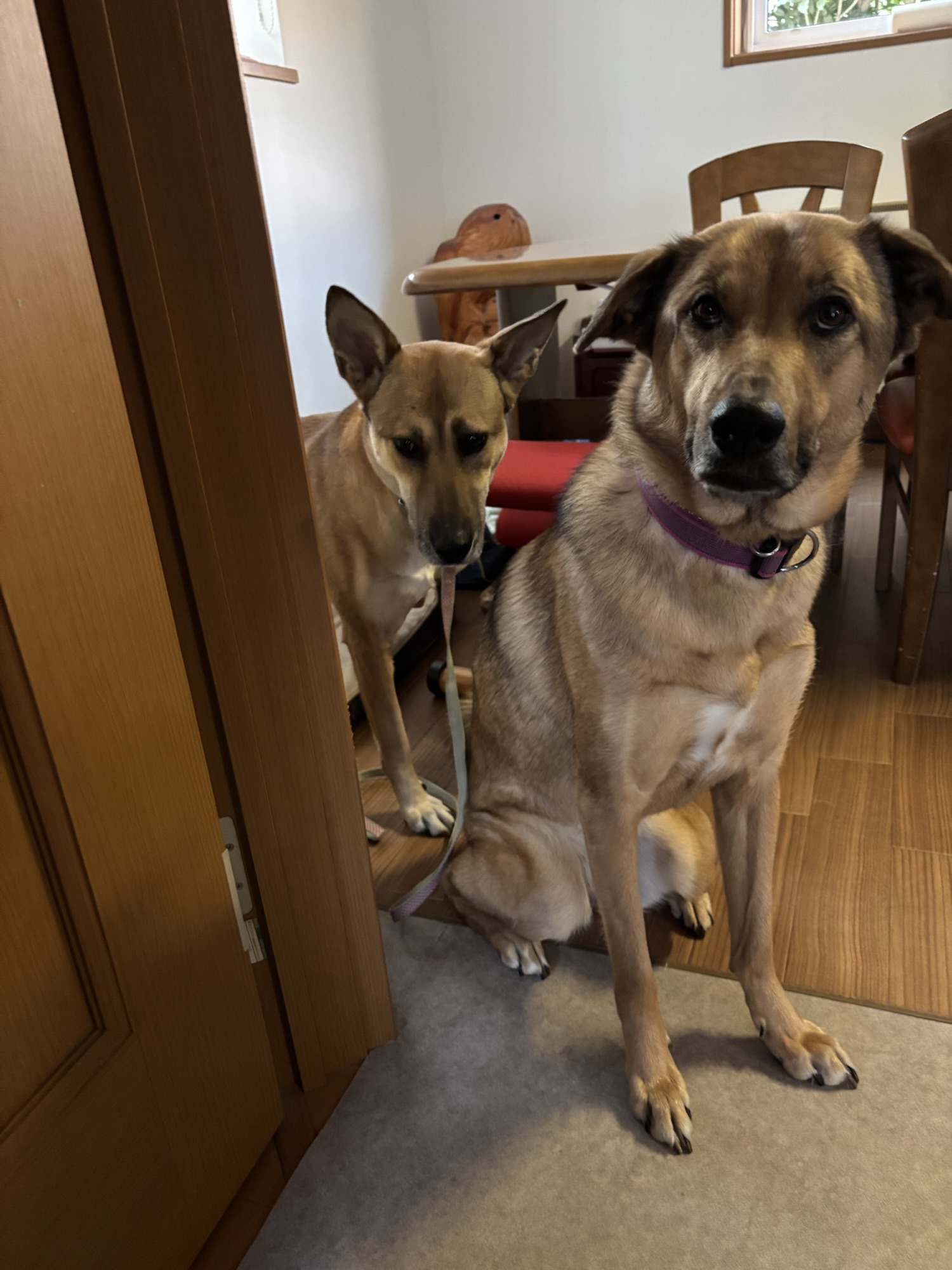 ということで、リードを持って玄関へ連れて来るんですよ。