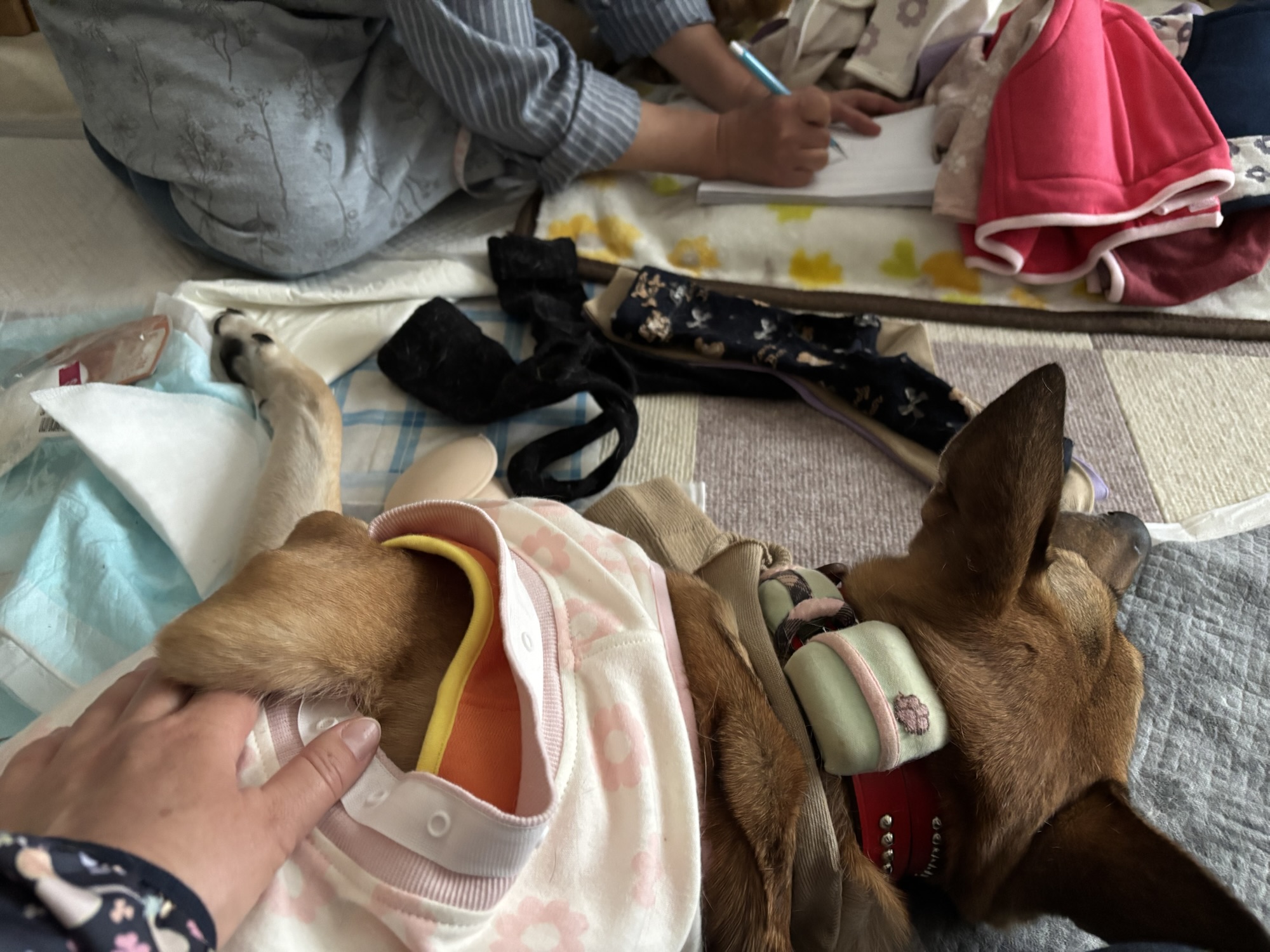 大人しくゴロンして、採寸してもらっているミクちゃん