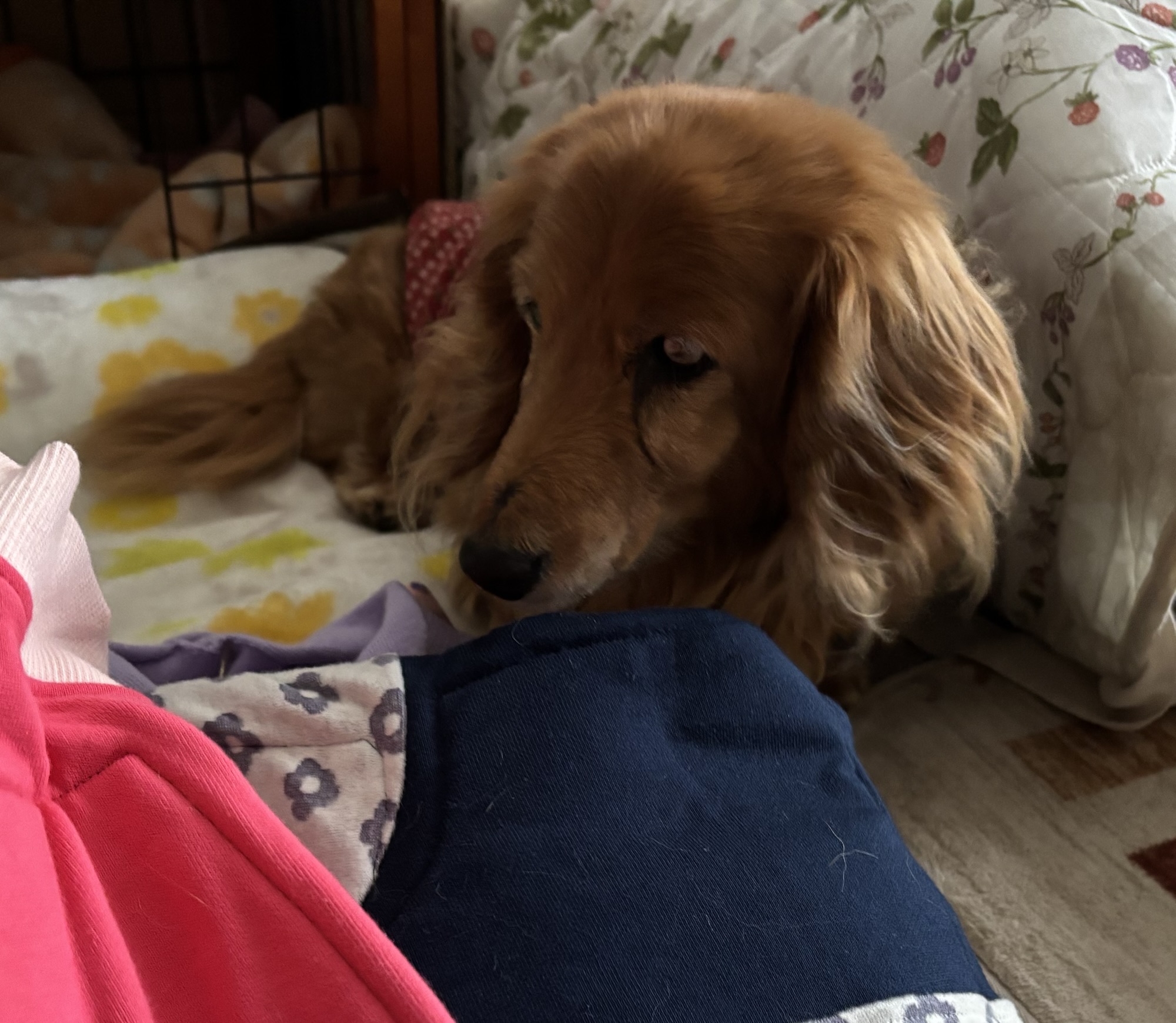 手前から、シニアダックスのくるみちゃん、ミクちゃん、トゥルーたん
