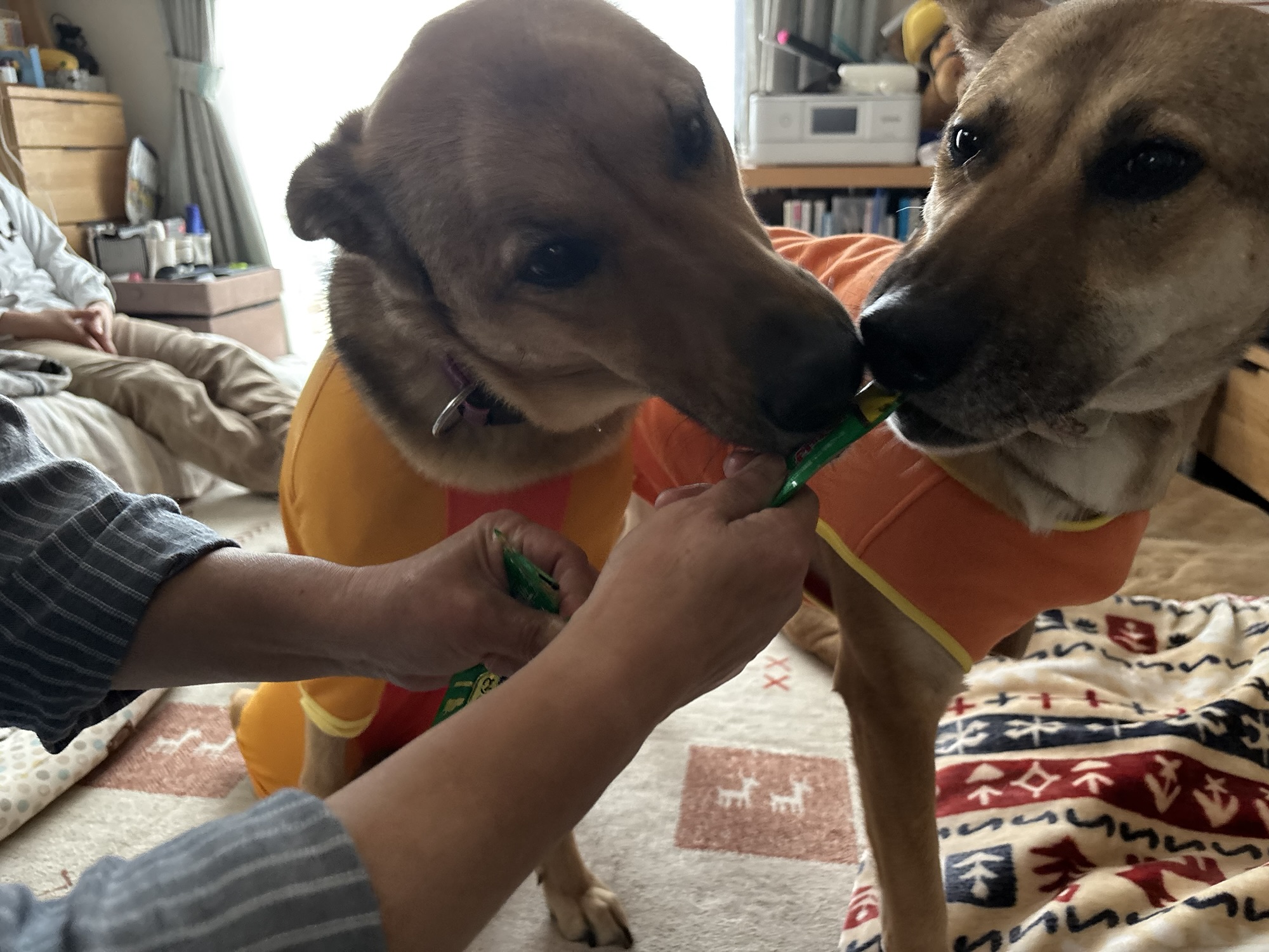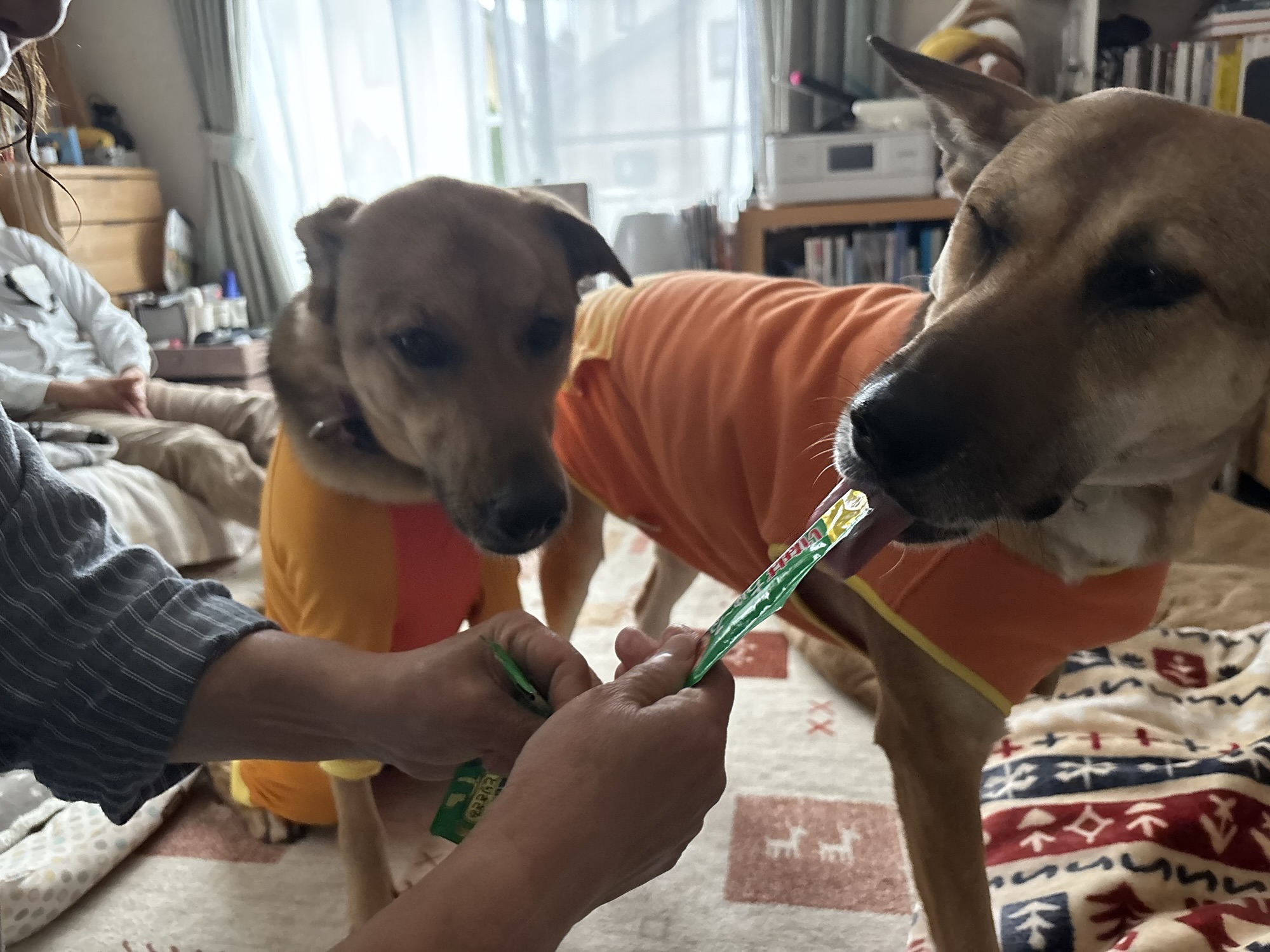 一通り採寸が終わって、わんこたちのお楽しみ♪ちゅーるタイム♪