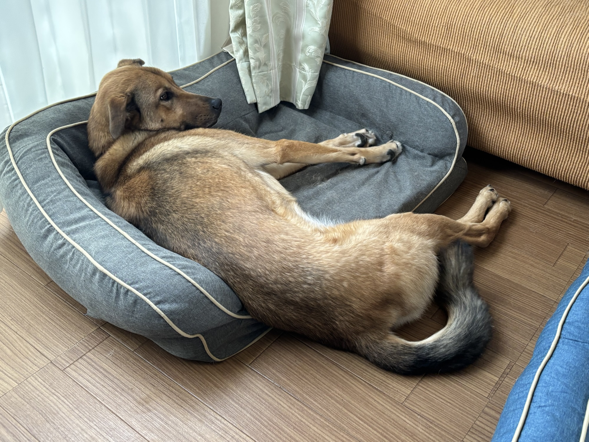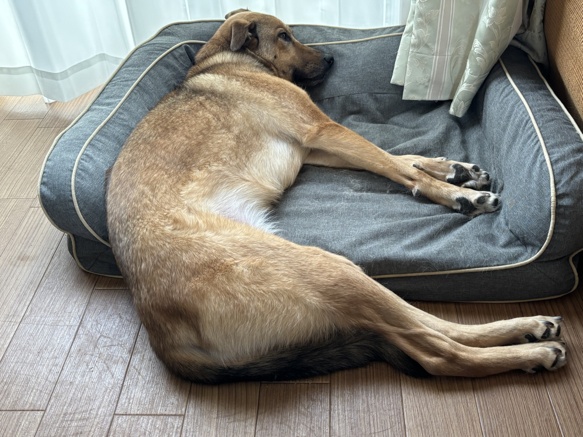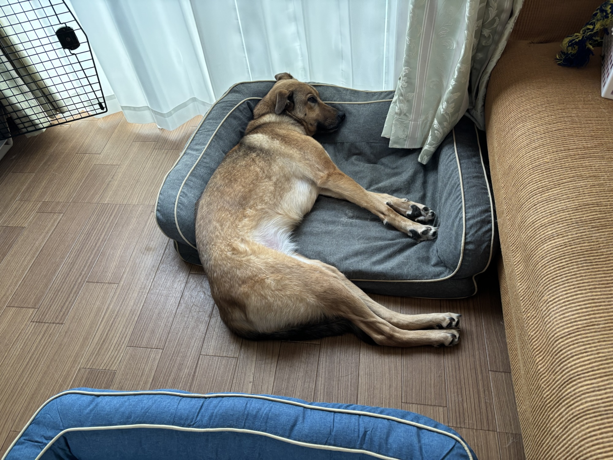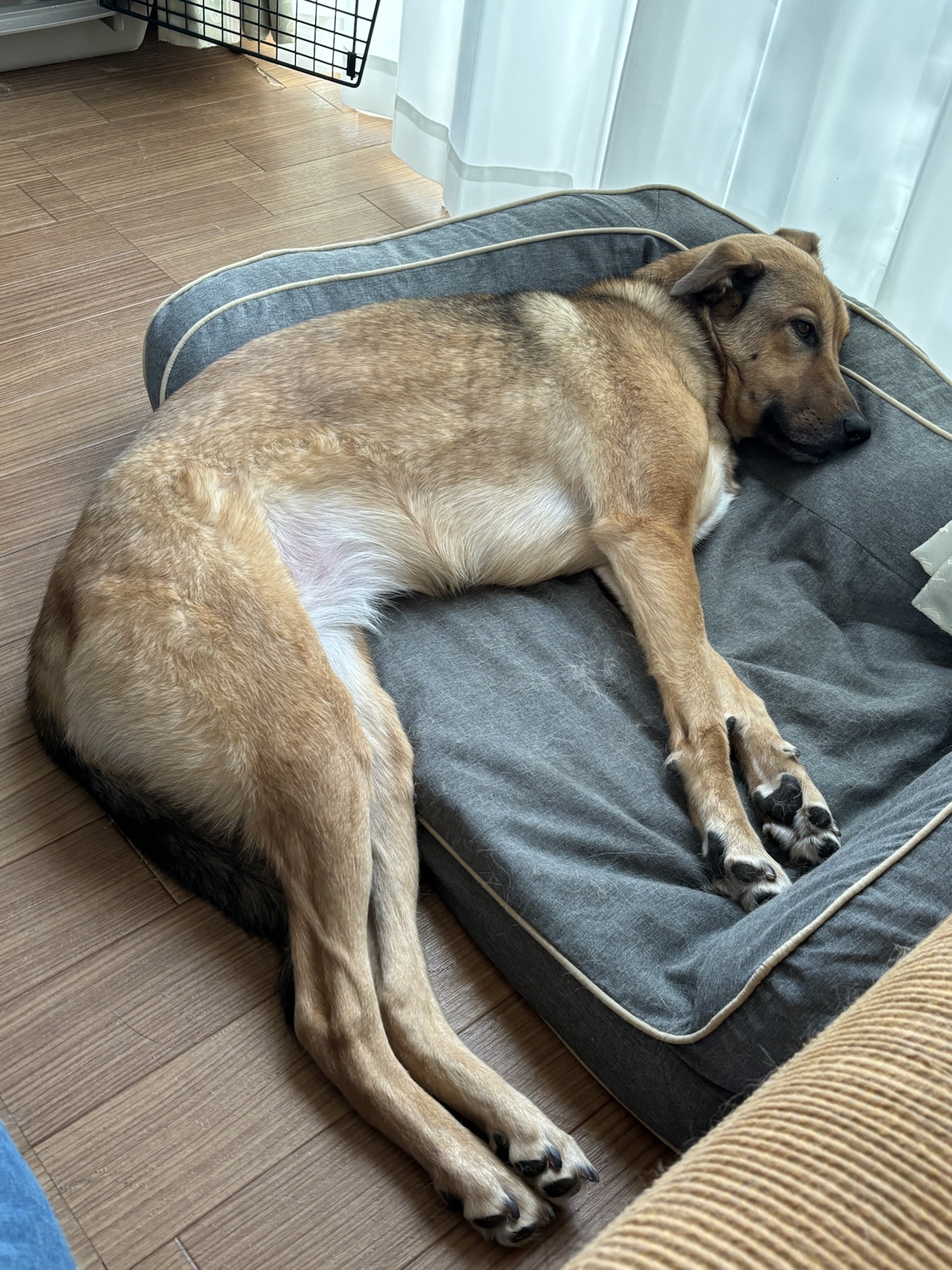 ドッグベッドから大きくはみ出して