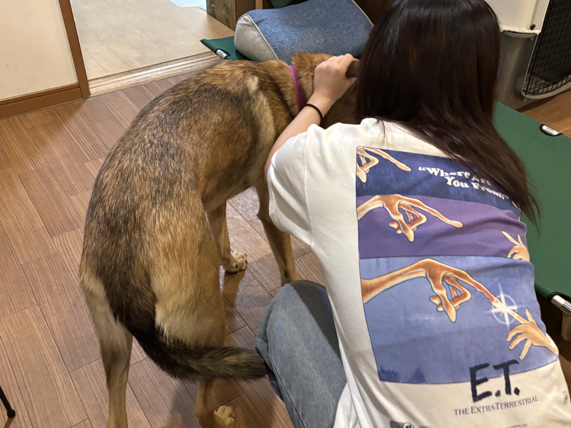 2025年8月10日 トゥルーたん♀(雑種)新教育係になりました。,タッチング,イベントのご案内,ミク♀雑種(里親募集中),リード練習,車に乗る練習,保護犬,ご支援のお礼,ドッグトレーニングの様子 8/10 家族団らんは、犬たちの災難だった?!&ご支援のお礼