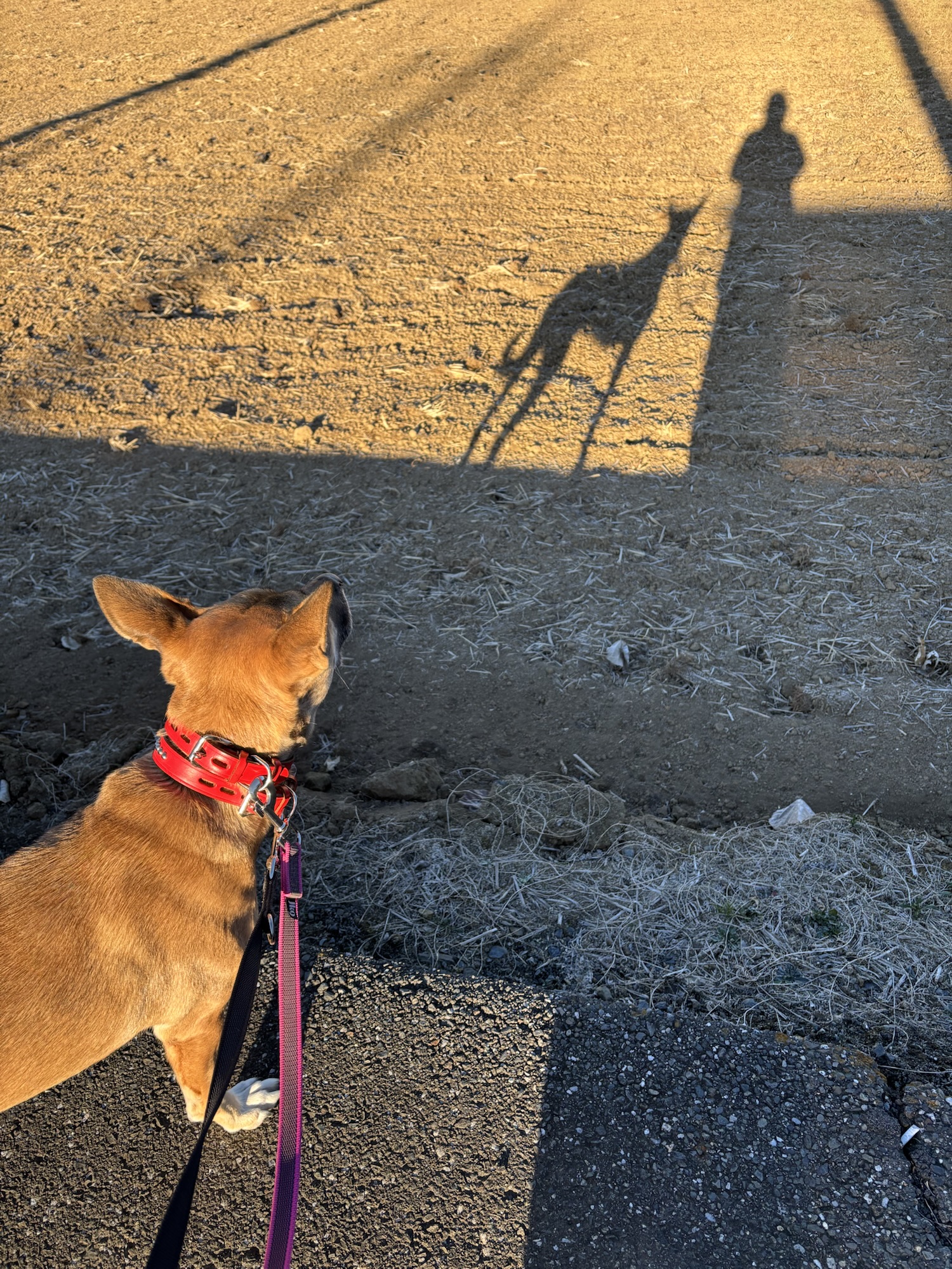 冬の朝日は、長~い影が出来ておもしろい
