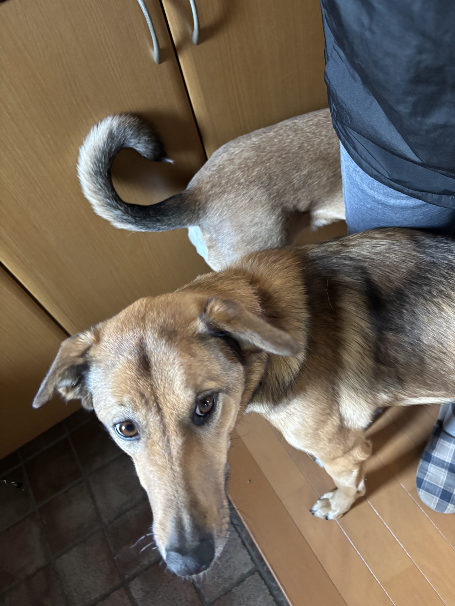 2025年12月21日 チャコままの想い,トゥルーたん♀(雑種)新教育係になりました。,ミク♀雑種(里親募集中),保護犬,ドッグトレーニングの様子 ミクちゃん、しっぽフリフリ♪わうわうおしゃべり(やっと撮れた!)